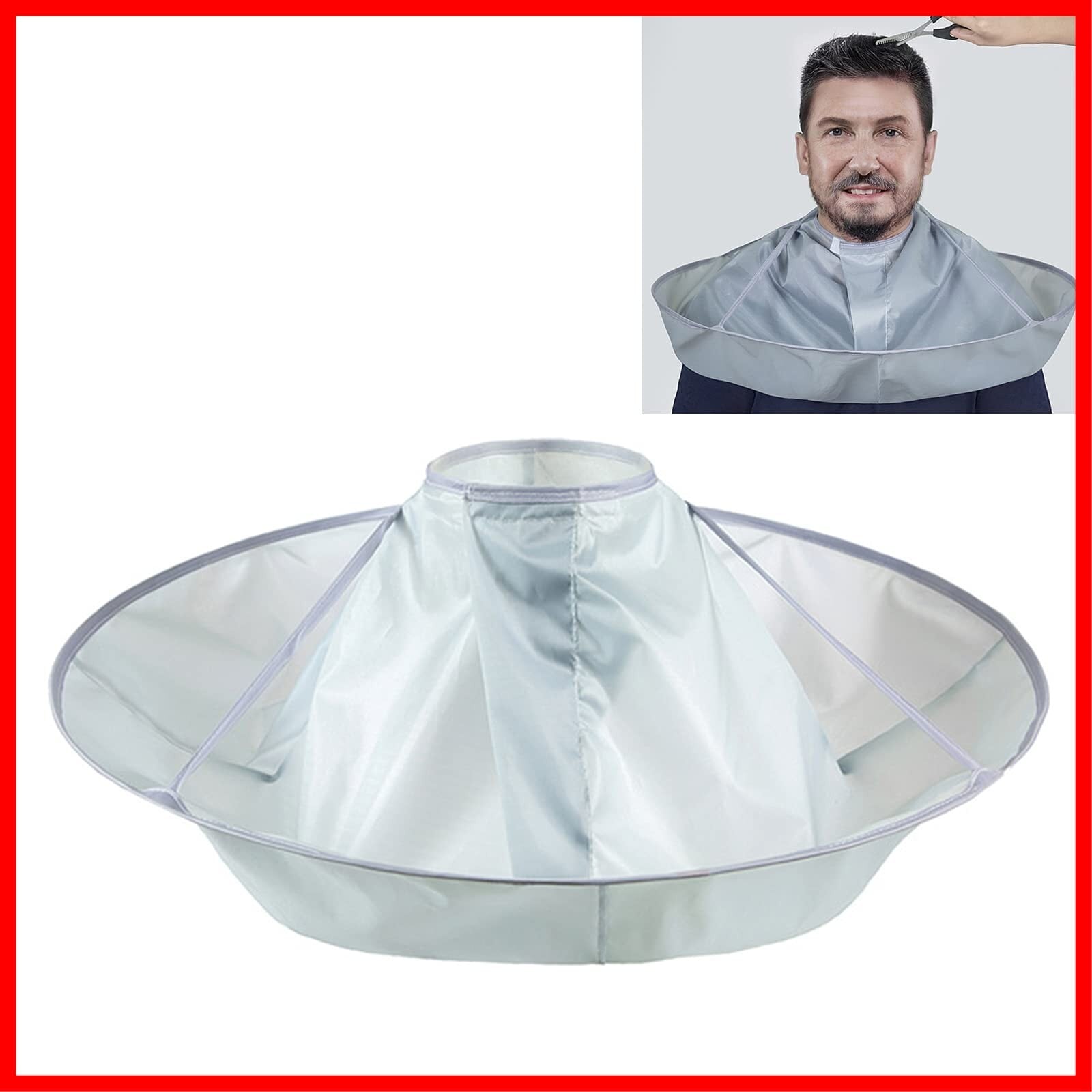LIKENNY カットクロス 散髪 ケープ ヘアカット ヘアーエプロン 散髪マント 刈布 自宅 カット 散髪 コンパクト 収納しやすい 折りたたみ式 防水 ヘアカット お家で手軽に散髪 毛染め 散髪道具 (シルバー)