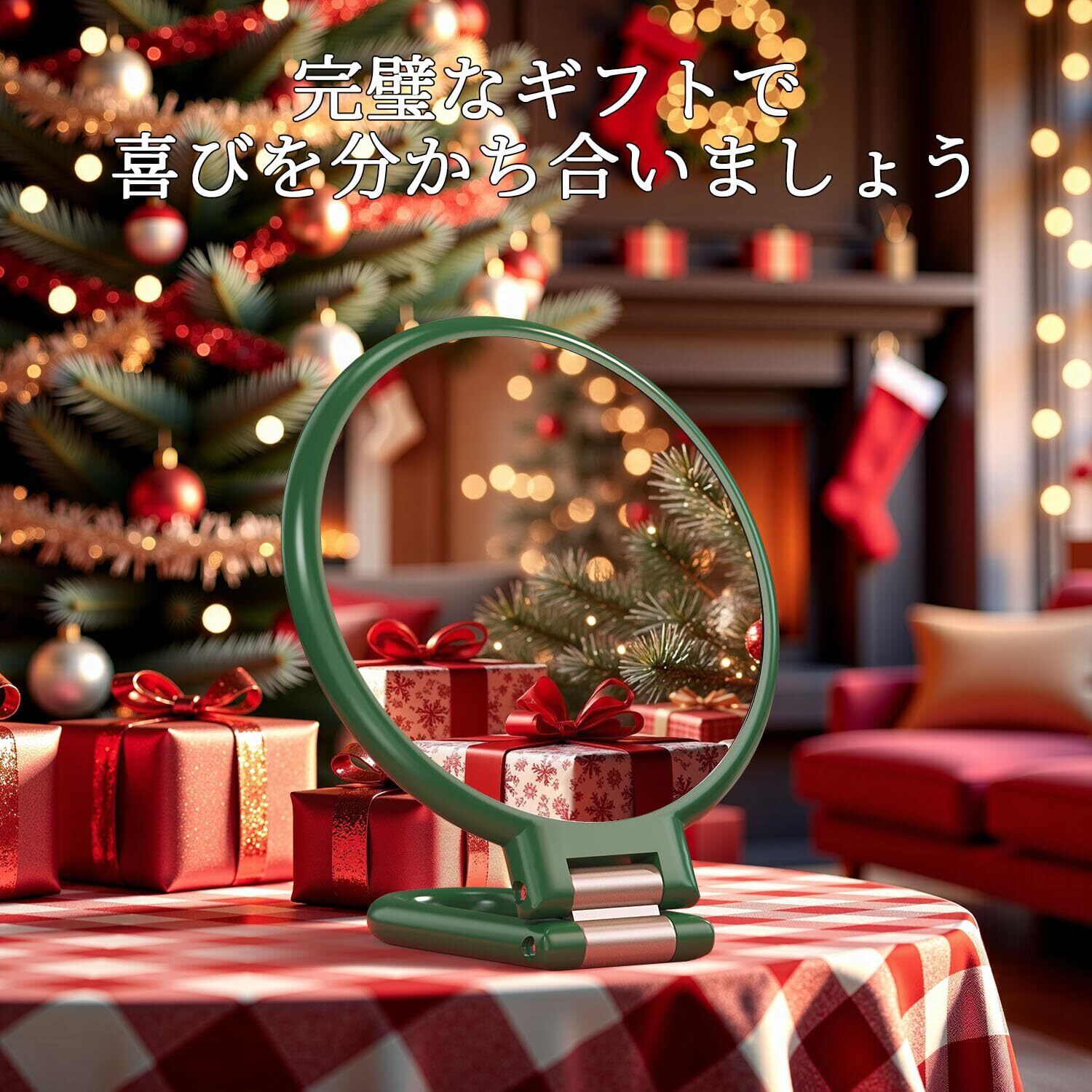 Auxmir 手鏡 化粧鏡 拡大鏡 30倍と等倍 折りたたみ式 ハンド&スタンドミラー 吊り下げ式 卓上/吊り下げ/手持ち可能 持ち運び便利 鏡 卓上 コンパクト 軽量 旅行用 ハンドル付き両面鏡 円形 緑色 プレゼント