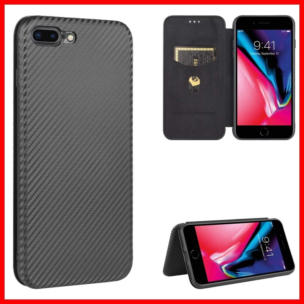 iPhone SE ケース 第3世代 手帳型 薄型 炭素繊維調 【Dingxin】iphone se3 財布型 マグネット式 カード収納あり ストラップホール ストラップ付 iPhone 8 / iPhone 7 / iPhone se2 対応 ケース 全面保護 耐衝撃 (ブラック)
