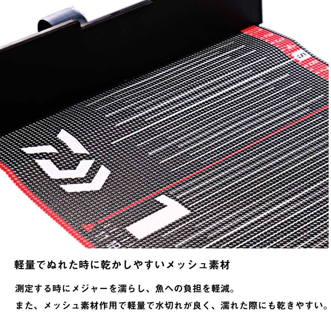【軽量でぬれた時に乾かしやすいメッシュ素材】 測定する時にメジャーを濡らし、魚への負担を少なく計測可能。また、メッシュ素材でメジャー生地が乾きやすい。