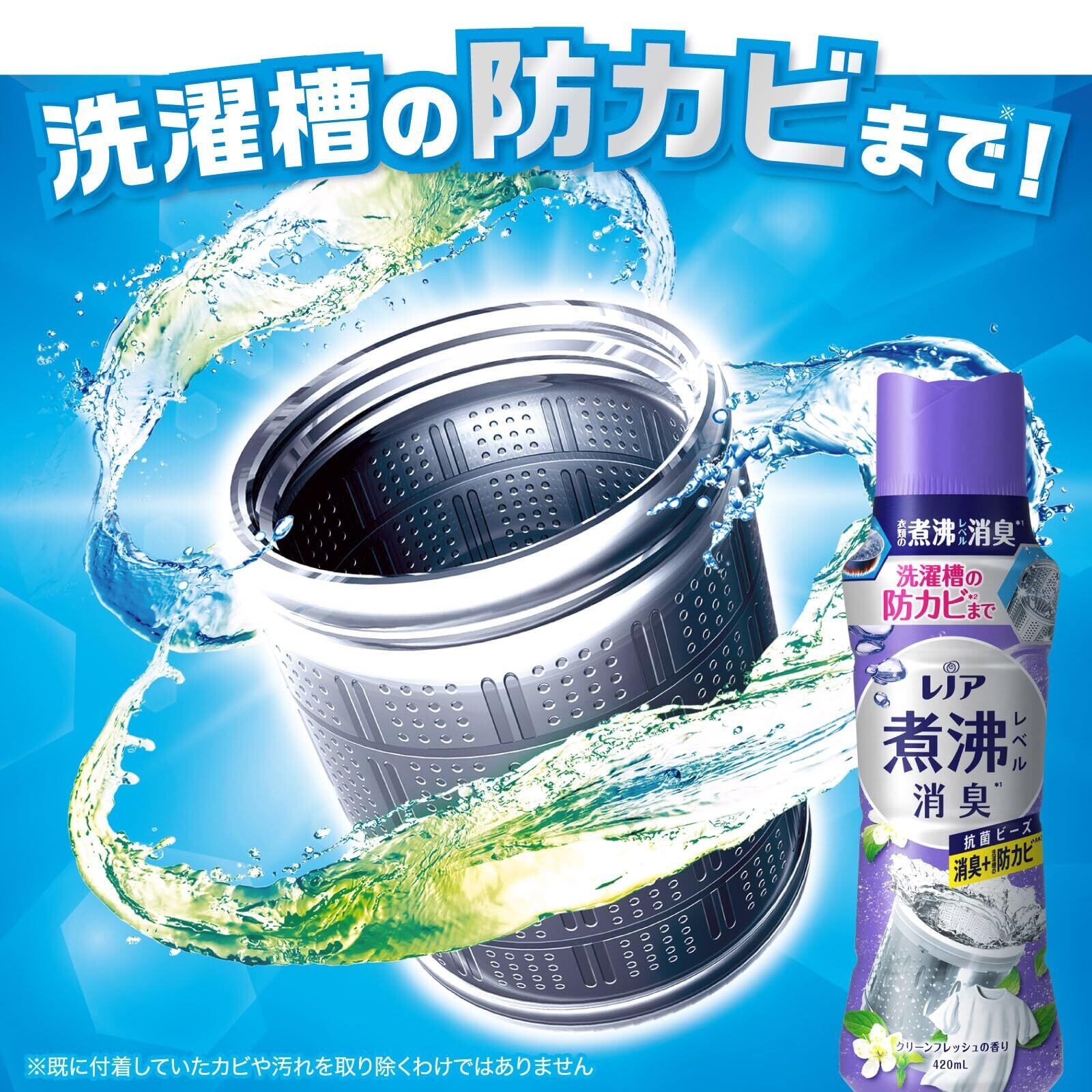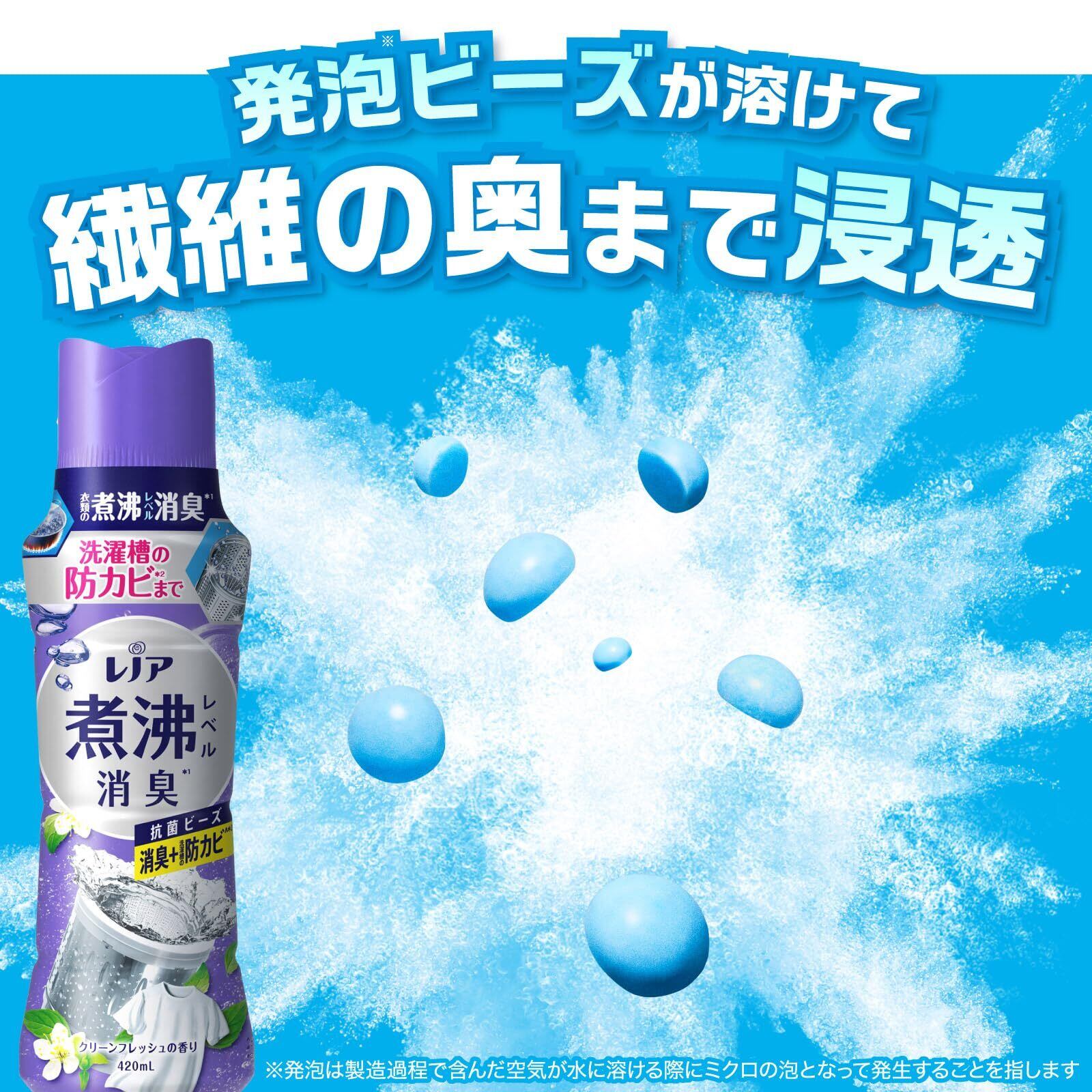 衣類の煮沸レベル消臭*1 洗濯槽の防カビ*2 まで! レノア 超消臭 煮沸レベル消臭 抗菌ビーズ 消臭+防カビ クリーンフレッシュ