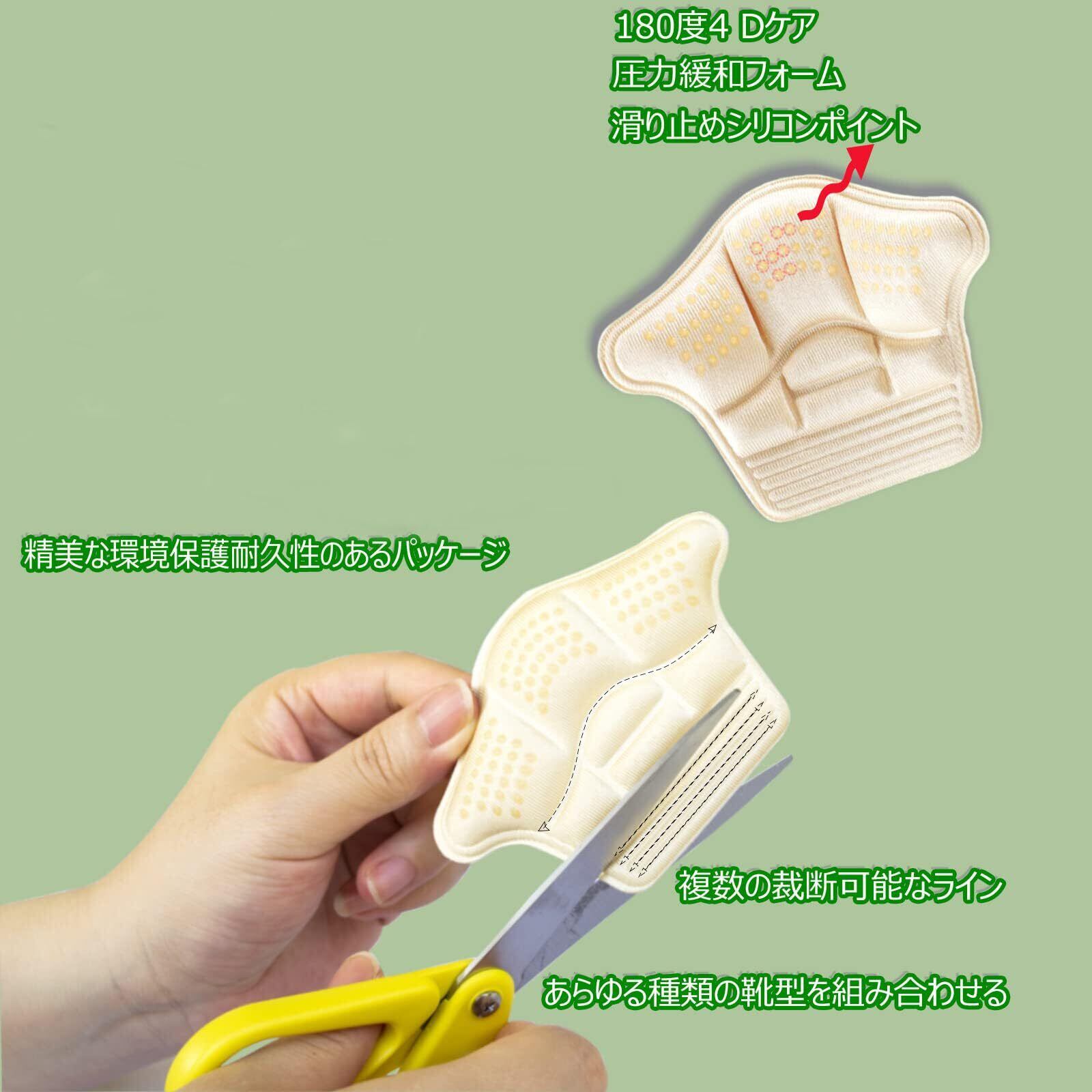 【便利に使える】よく貼り付く両面テープを使用、粘着力が強く、靴が脱げることもありません。粘着保護シートをはがし、靴かかとの曲線に沿ってパッドを貼り付けるだけ!使い方簡単。初心者さんだって気軽に使えます。ご自身のサイズに合わせてカットすることもできます。だから、このかかとパッドはスポーツシューズ、平底靴、ハイカットスニーカーや各種革靴にも使えるのです。