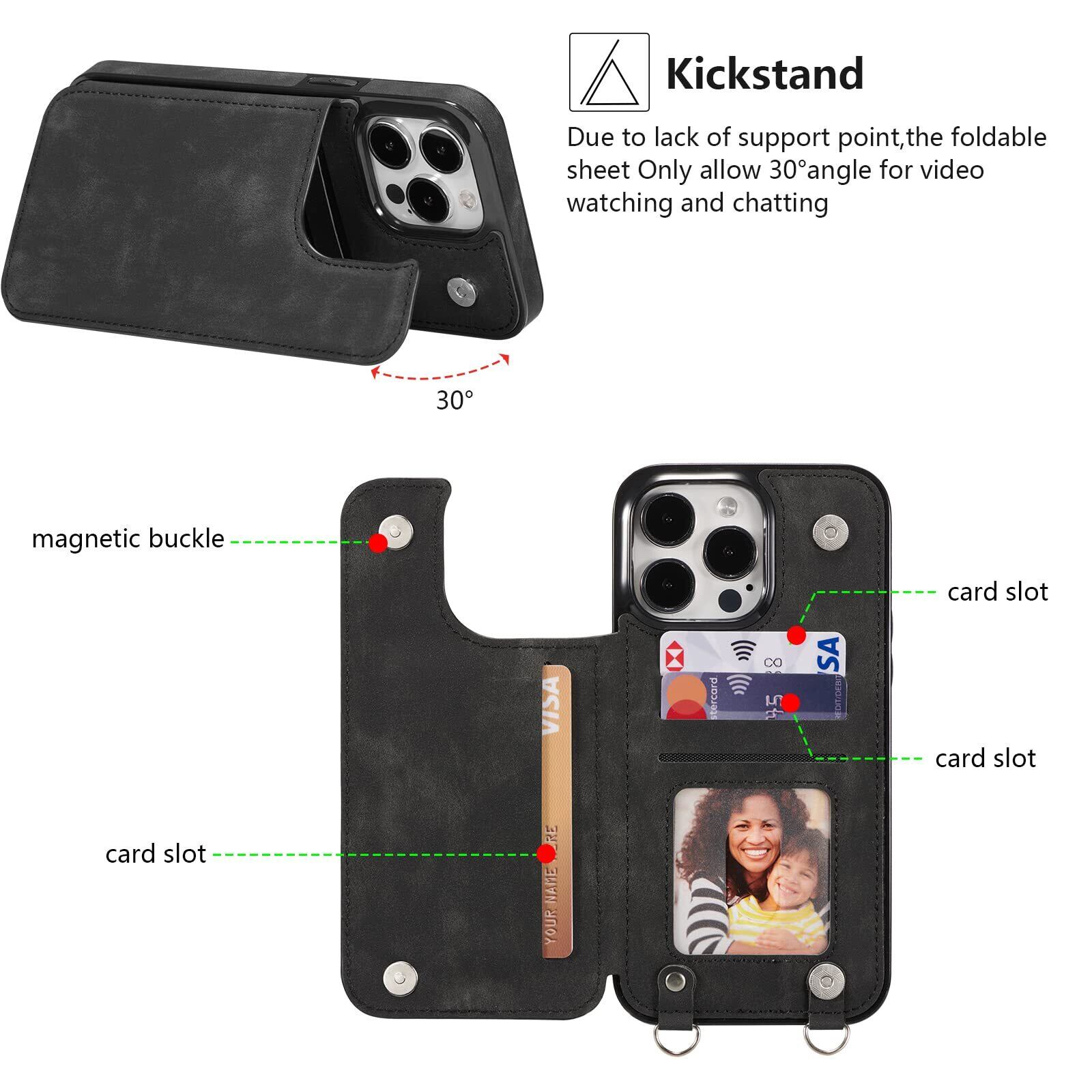 ZTOFERA iPhone 14 Pro Max 用ケース 背面 手帳型 カードケース アイフォン 14 Pro Max 財布型 背面カバー カード収納付き ショルダー クロスボディ ストラップ 上質PUレザー 人気 ケース 肩掛け 首掛け 斜めがけ 多機能 おしゃれ スマホケース 衝撃吸収 レンズ保護 落下保護 取り外し可能 長さ調整可能 軽量 女性 携帯カバー (ブラック)