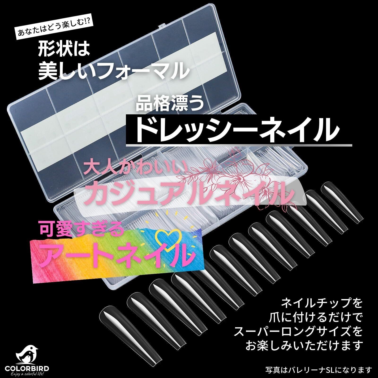 COLORBIRD ネイルチップ ロング スーパーロング 240枚 超鬼ロング クリア ギャルネイル 付け爪 (スクエアSL)