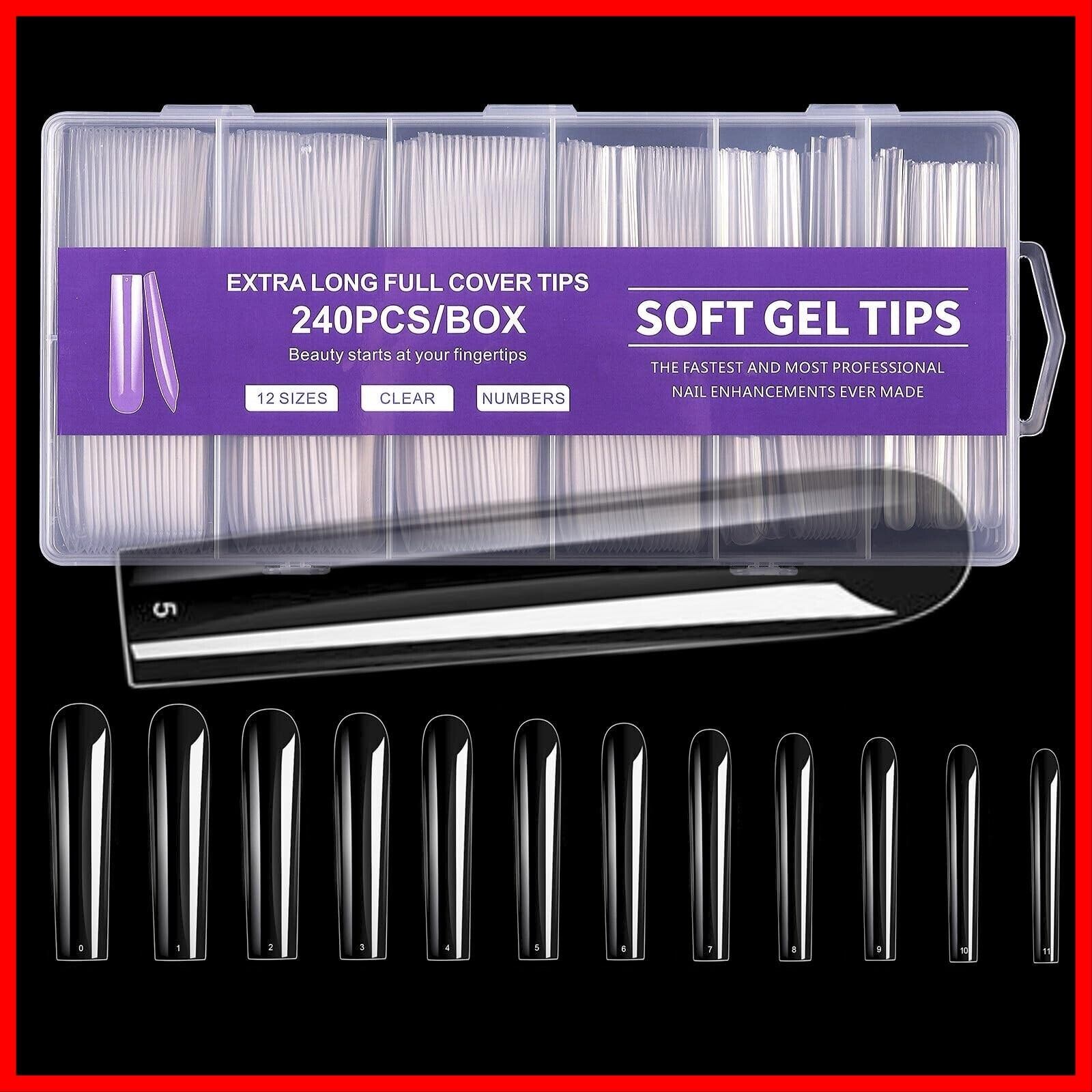 ネイルチップ スーパーロング 12サイズ 240pcs 長くて美しいネイルを楽しめるスーパーロングタイプ。形状はオーバル、ポイント、バレリーナ、スクエアオフ、スクエアからお選びいただけます。