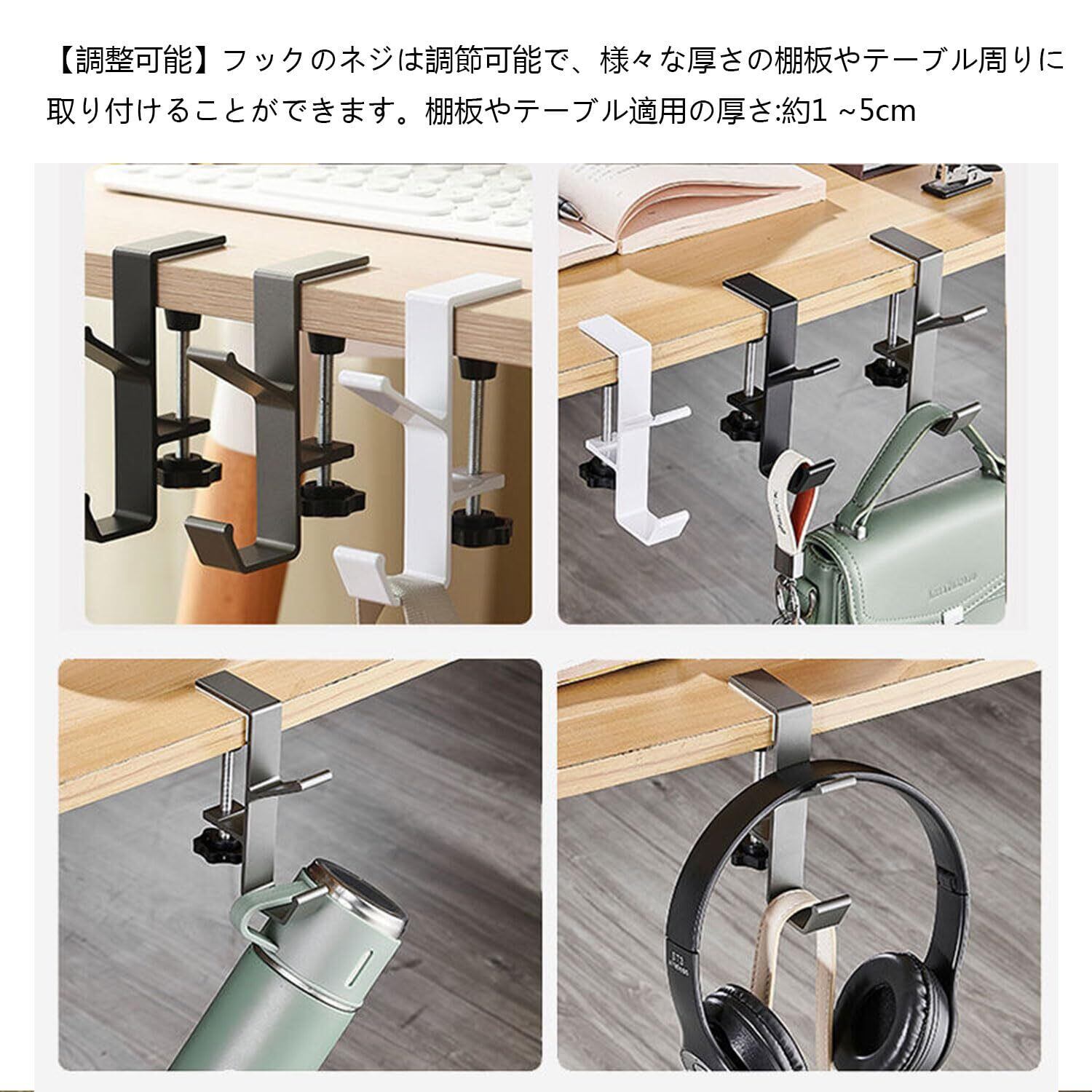 【調整可能】フックのネジは調節可能で、様々な厚さの棚板やテーブル周りに取り付けることができます。棚板やテーブル適用の厚さ:約1 ~5cm
