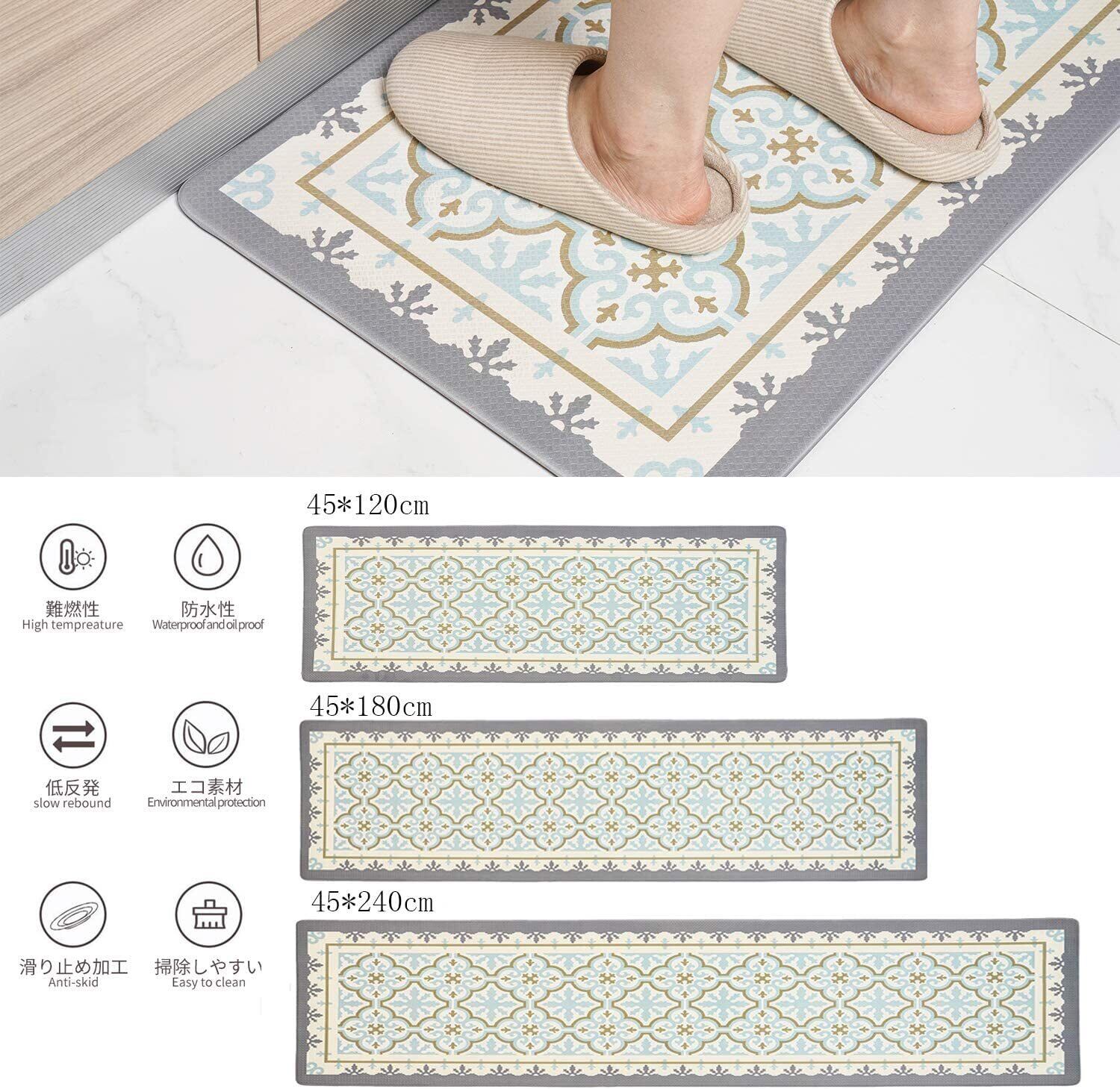 Ashmore キッチンマット 拭ける台所マ ット ずれない PVCロング床マット 撥水 おしゃれ 滑り止め 抗菌 防炎 厚さ10mm お手入れ簡単 約45cm*180cm スノーフレーク