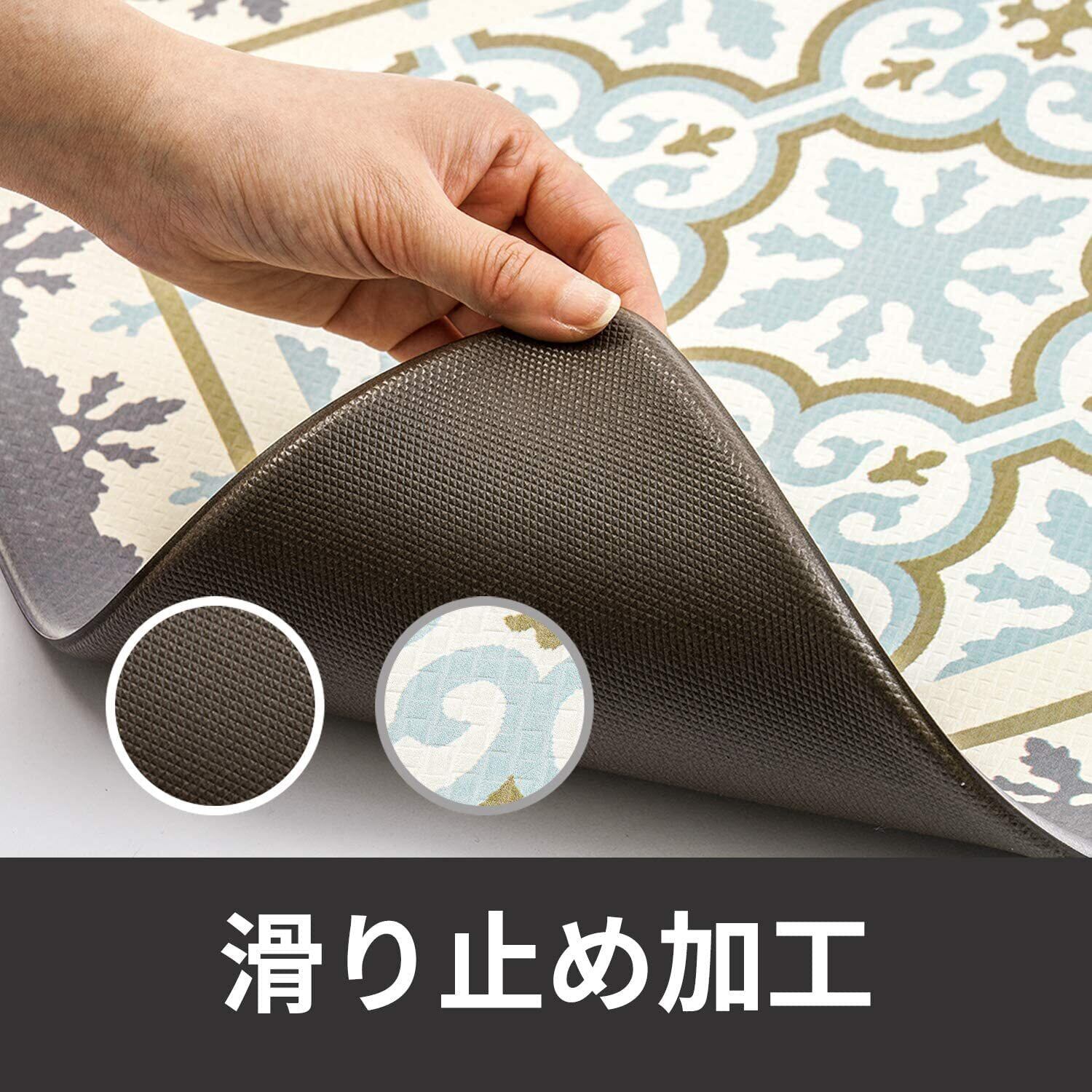 【厚いPVC】 足が疲れにく設計、もちもちの踏み心地でクッション性が高く台所マットです。長時間の立ち仕事も疲れにくい。このマットは素足でも、スリッパを履いたままでもいいです。物が落下しても衝撃を吸収し、床をキズやヘコミから守ります。