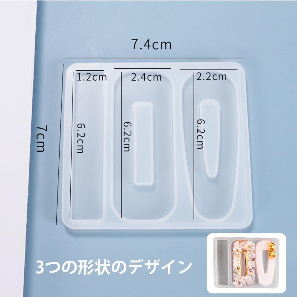 セット内容:ヘアクリップ シリコンモールド3個セット(20個金具クリップ付き)、サイズ:約7cm*7.4cm、8cm*14.5cm、7.8cm*10.9cm。