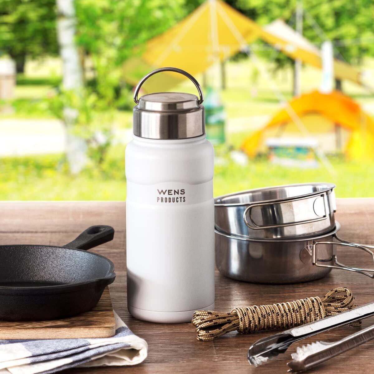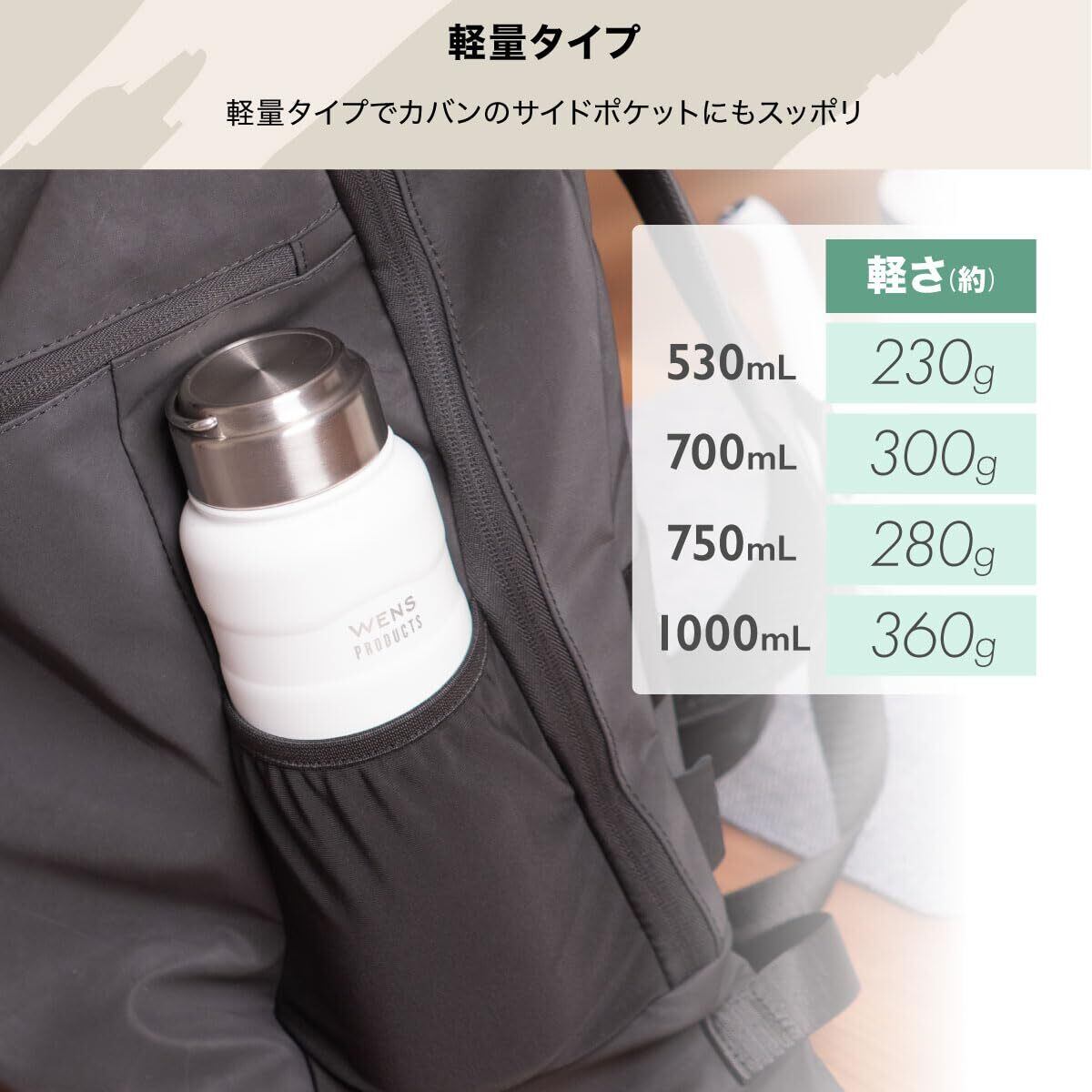 アトラス 水筒 500ml 保冷 保温 真空断熱 ステンレス マグボトル スクリュー 直飲み 洗いやすい アウトドア WENS ウェンズ 530ml ホワイト 白湯 AWPB-500WH
