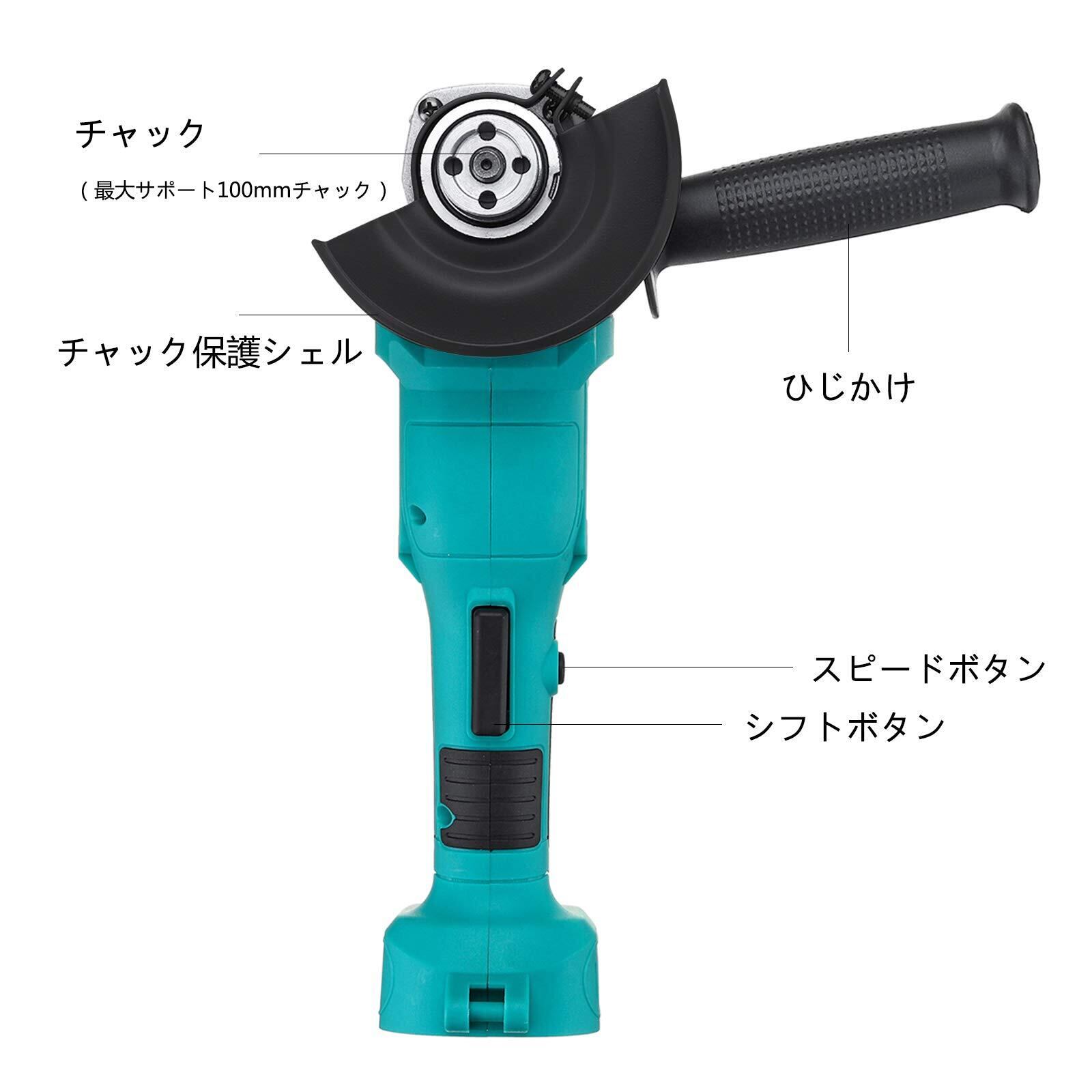 FSYAO 18V 充電式 コードレスグラインダー 100ミリディスクグラインダー BL21AG 2段階変速型 ディスクグラインダ 切断(本体のみ、バッテリー・充電器別売り)