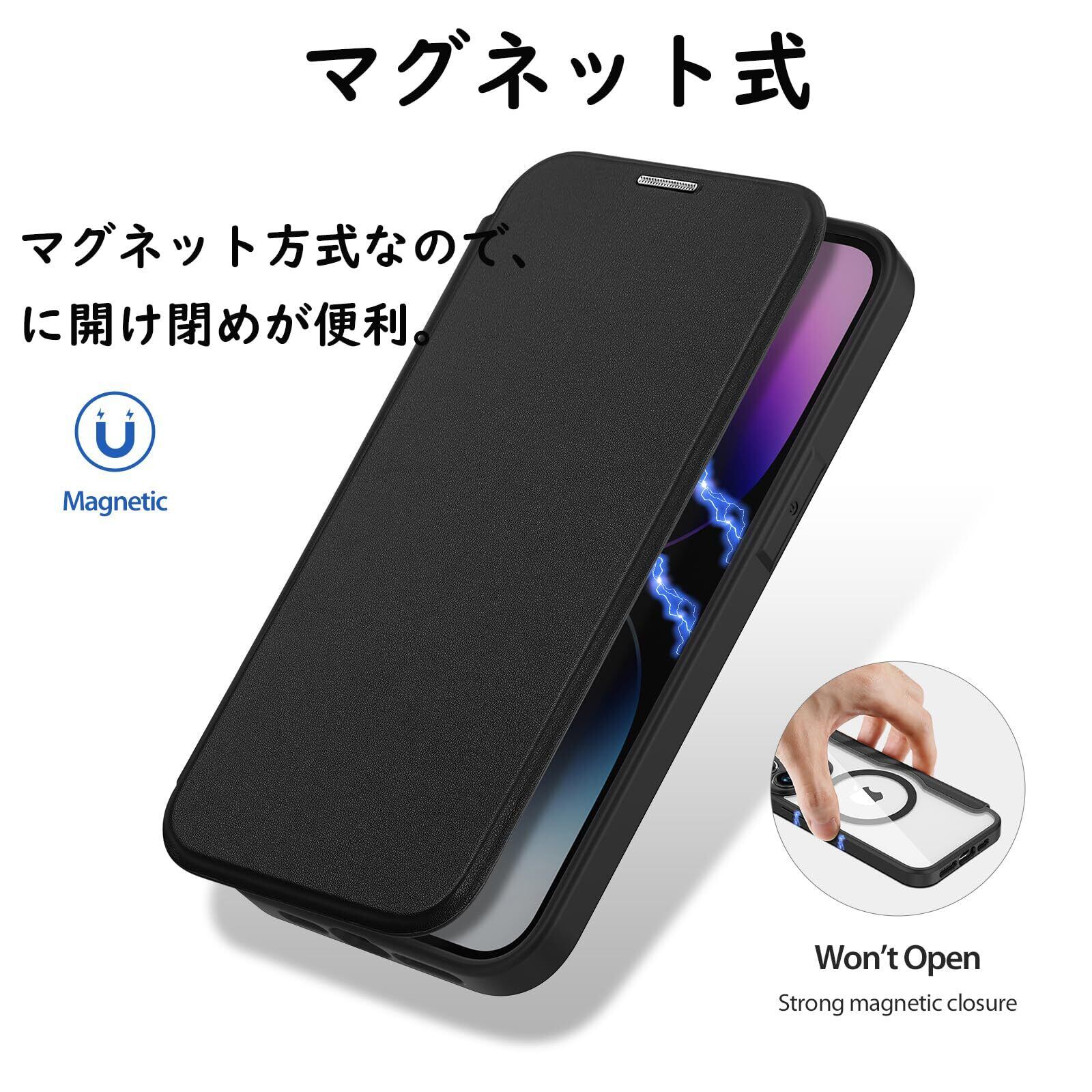 JCGOOD iPhone 15 Pro ケース 手帳型 MagSafe カード収納 アイフォン 15 プロ マグセーフ 手帳 ワイヤレス充電対応 カード入れ マグネット式 PU革 レザー スマホケース 軽量 薄型 防塵 耐衝撃 全面保護 携帯ケース アイホン 15 プロ 6.1 インチ用 ブラック