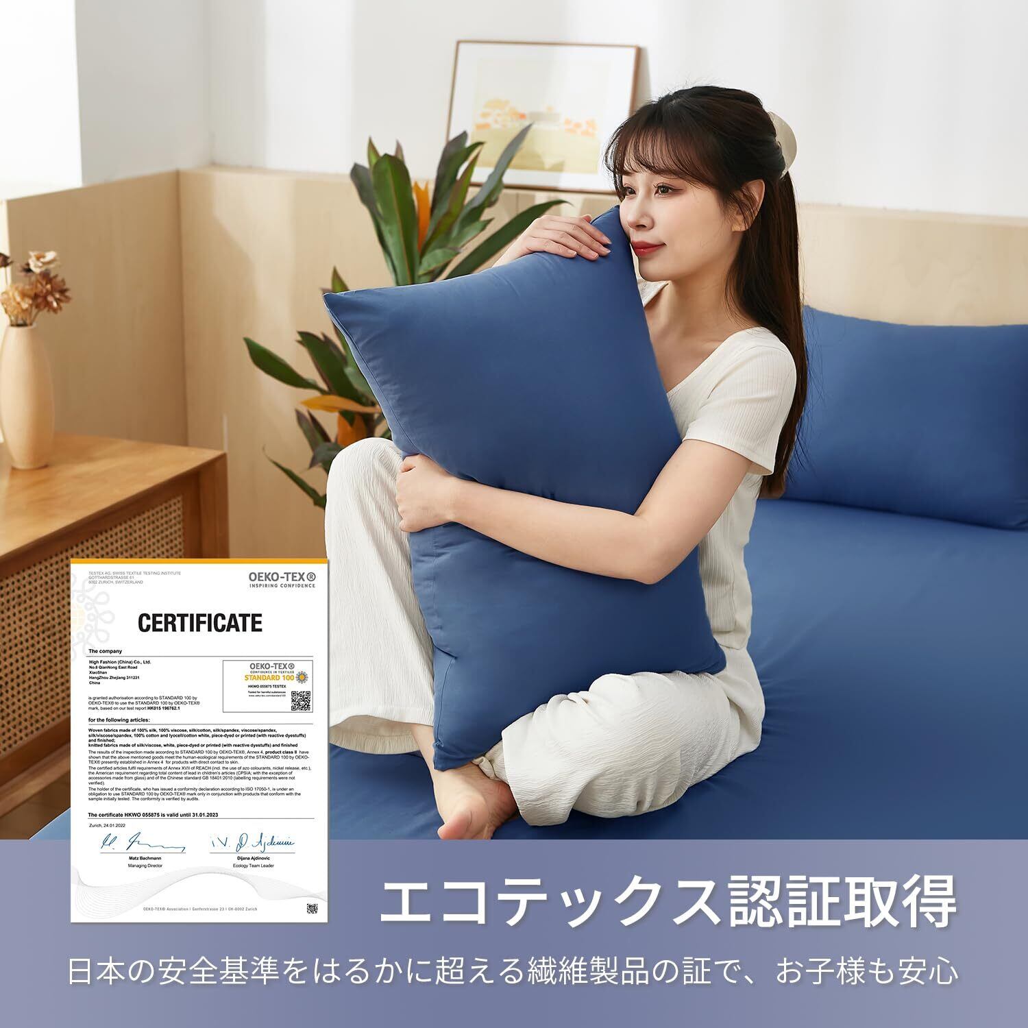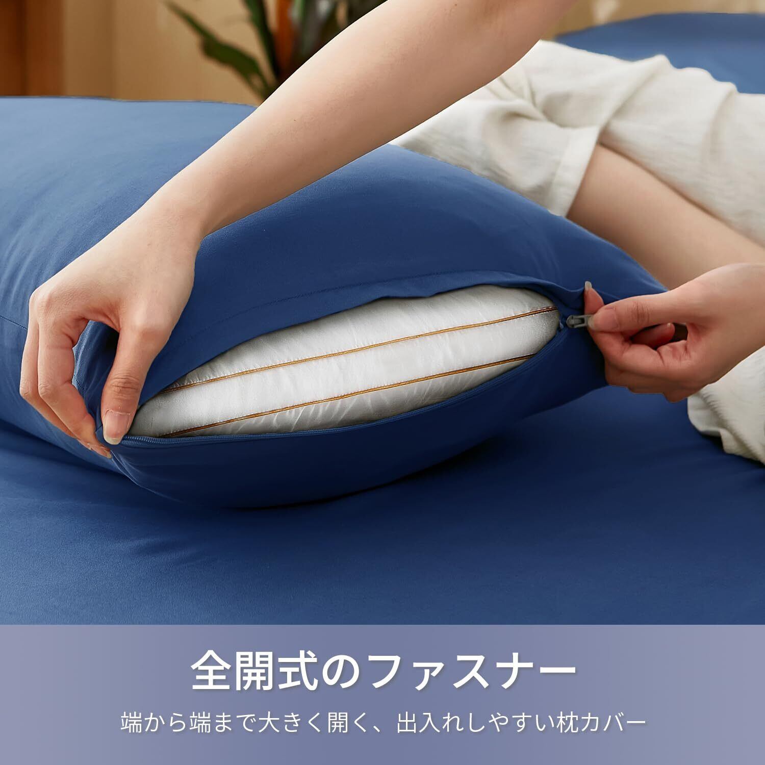 AZRA 枕カバー 2枚セット ピーチスキン加工 ファスナー式 チャック付き おしゃれ オールシーズン ピローケース 通気 速乾 43*63cm ダークブルー