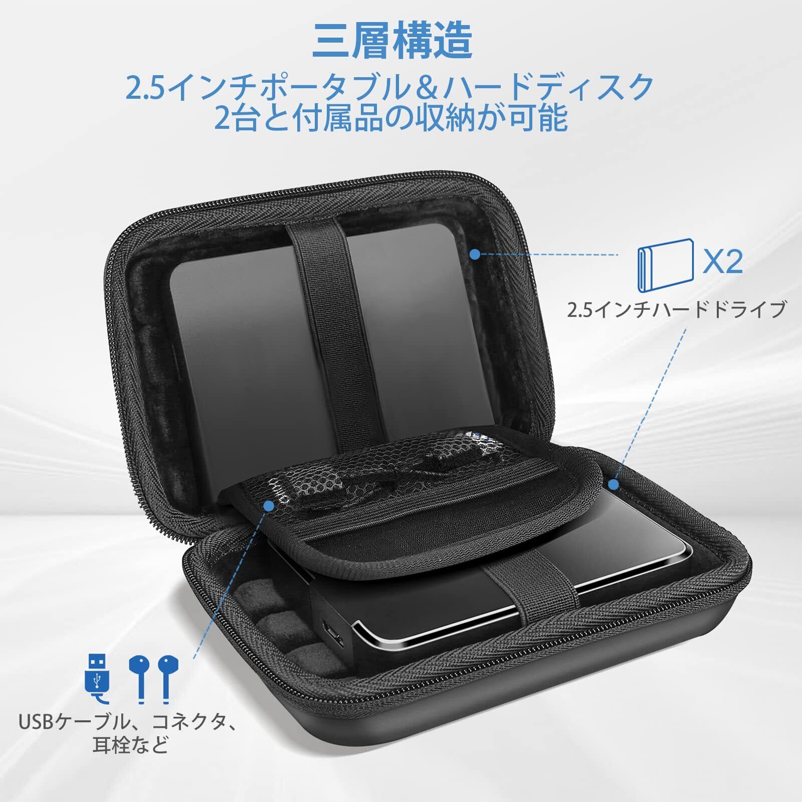 【対応機種】2.5インチのハードディスクを2個収納可能:Seagate Backup Plus Slim Expansion/ Western Digital My Passport Ultra Slim WD Elements/ Toshiba Canvio Basics/ Canvio Advance/ Seagate Game Driveなど(ケースのみ、 デバイスとアクセサリーは含まれていません)