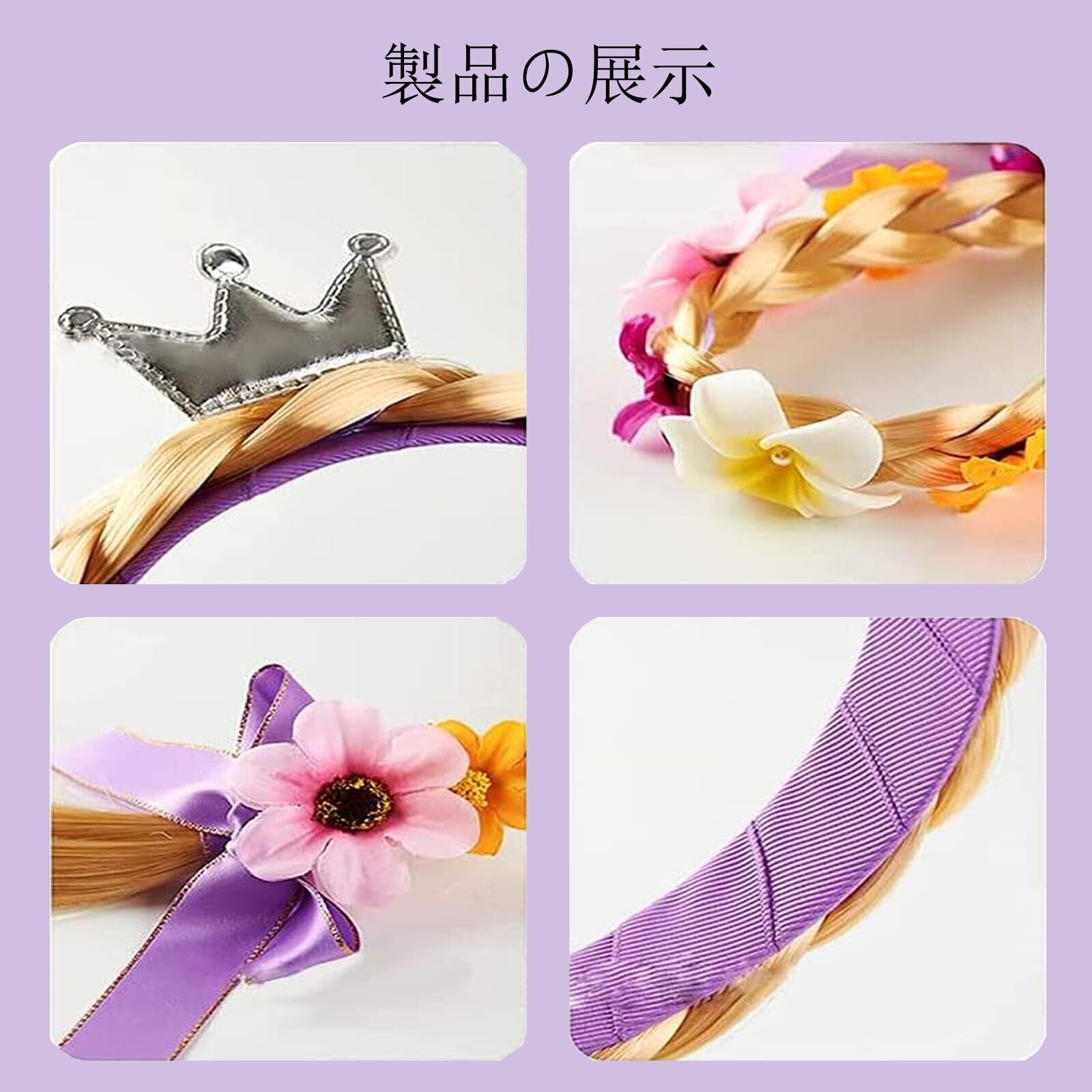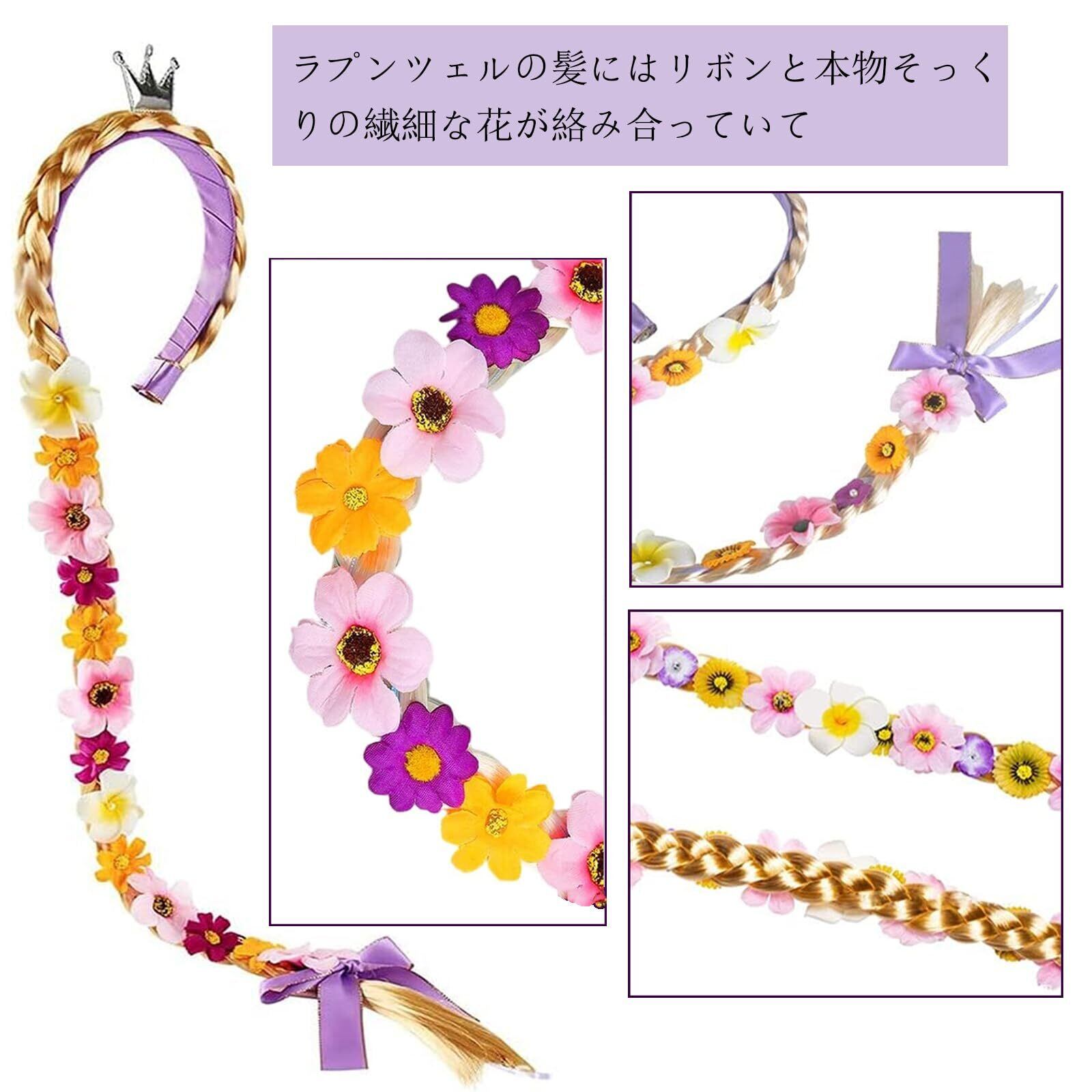 【サイズ】組紐の長さは約100cm、カチューシャの直径は約2.5cmです。あなたの子供がきらめくラプンツェルになるようにします。