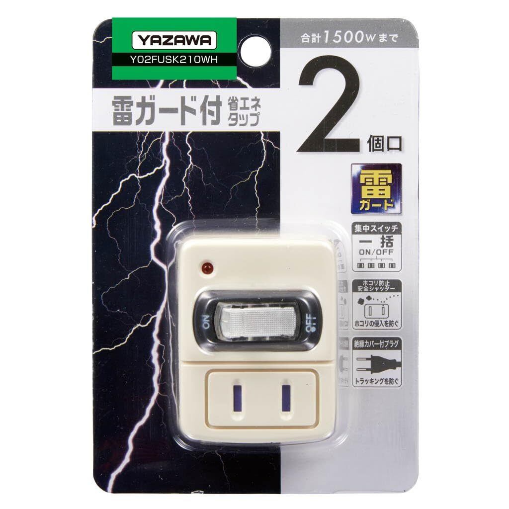 アイメディア(Aimedia) ヤザワ YAZAWA コンセントタップ 電源タップ 2個口 集中スイッチ付 2AC 雷ガード付フロントタップ型 雷サージ AY02FUSK210W ヤザワコーポレーション ホワイト 42×45×50mm