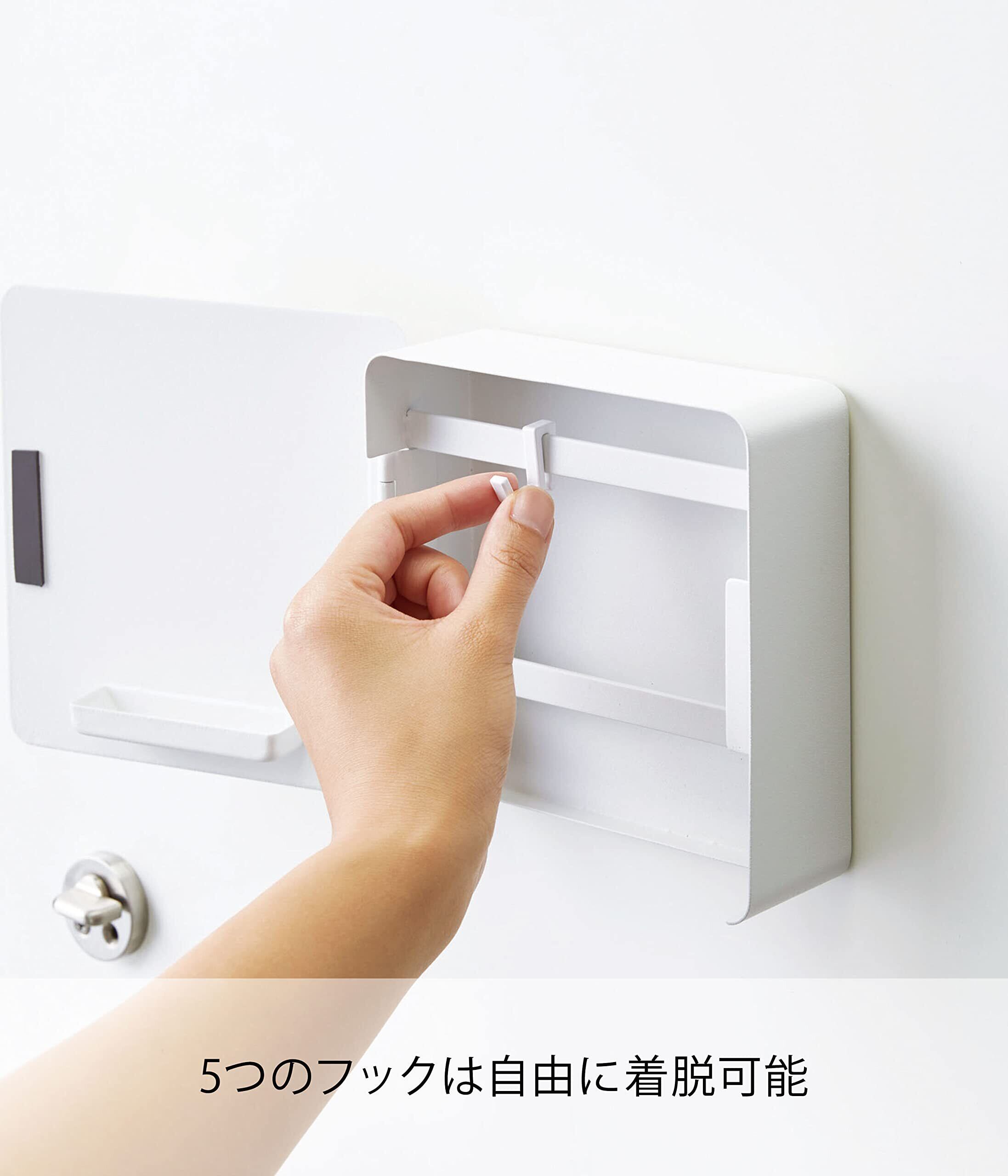 品質表示:扉・本体:スチール(粉体塗装) マグネット フック(ABS樹脂)×5