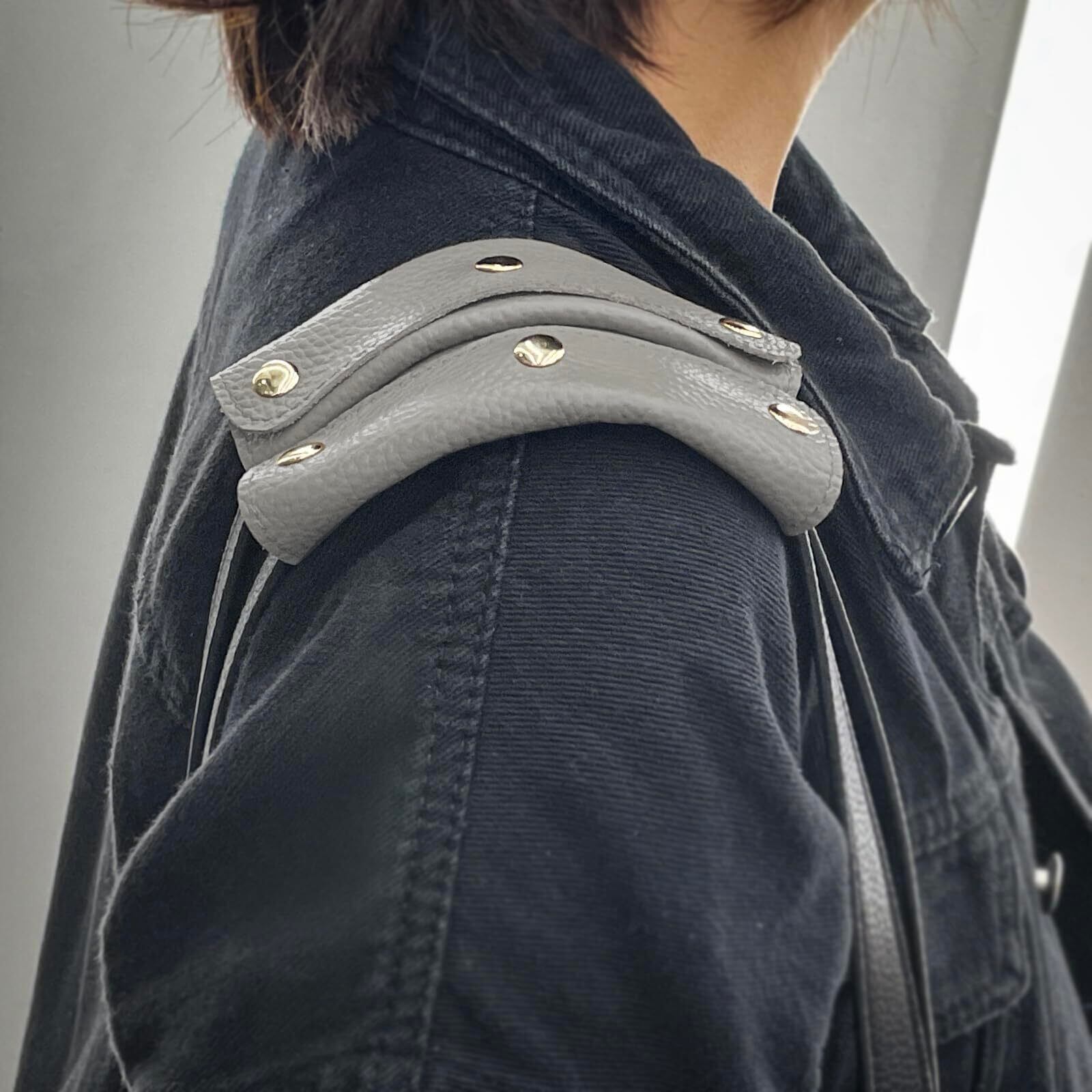 【本革素材 】柔らかでしなやかな本革製バッグ 持ち手カバー です。高級感のあるアンティークゴールドボタンが3つ付いてるので持ち手のカーブにもフィットしました。