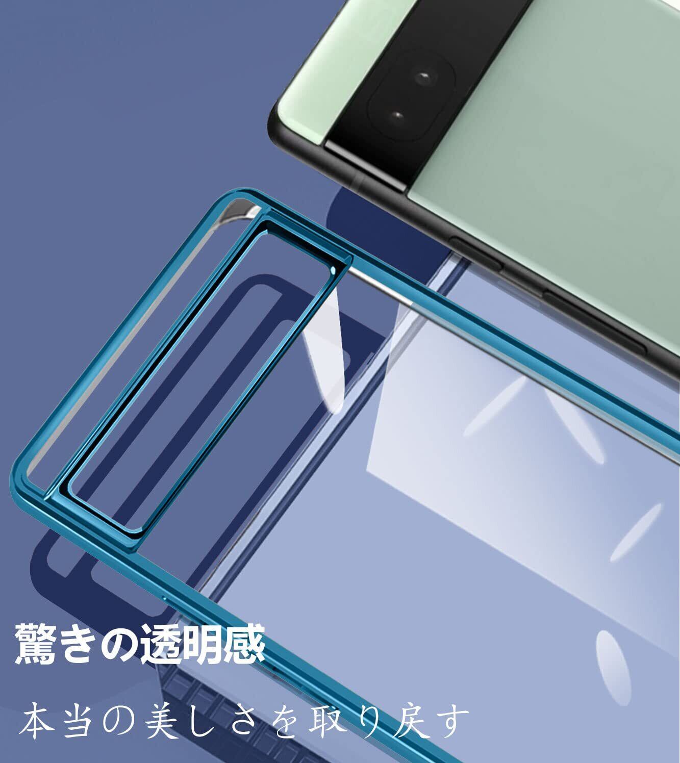 Google Pixel6A ケース クリア グーグル ピクセル 6A スマホケース TPU素材 薄型 耐衝撃 カバー ストラップホール付き 落下防止 滑り止め (ブルー)