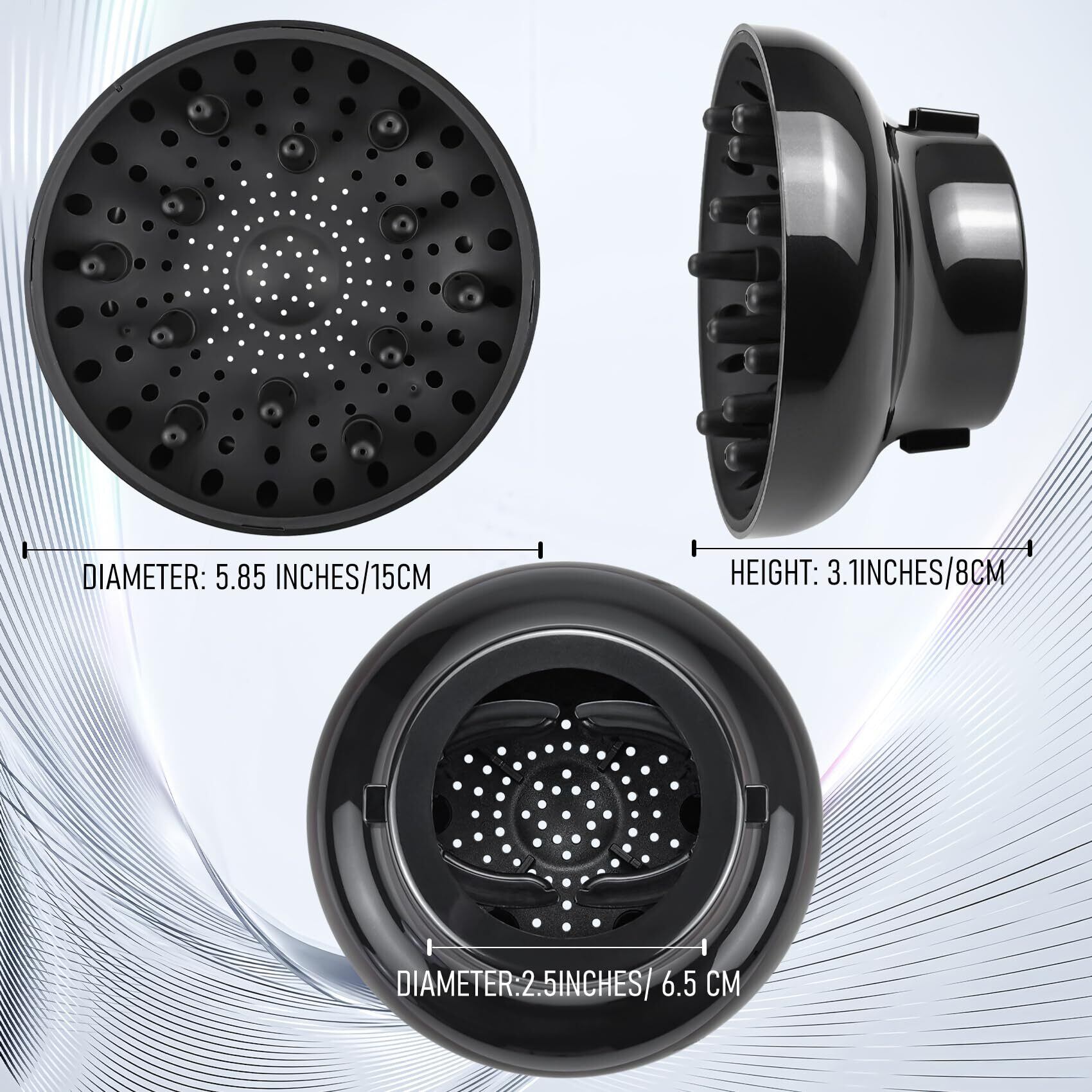 ヘアドライヤー用のユニバーサルディフューザー、カール用のプロフェッショナルヘアドライヤーディフューザーアクセサリー、4〜6 cmのノズルを備えたほとんどのヘアドライヤーに適合(黒の外観)