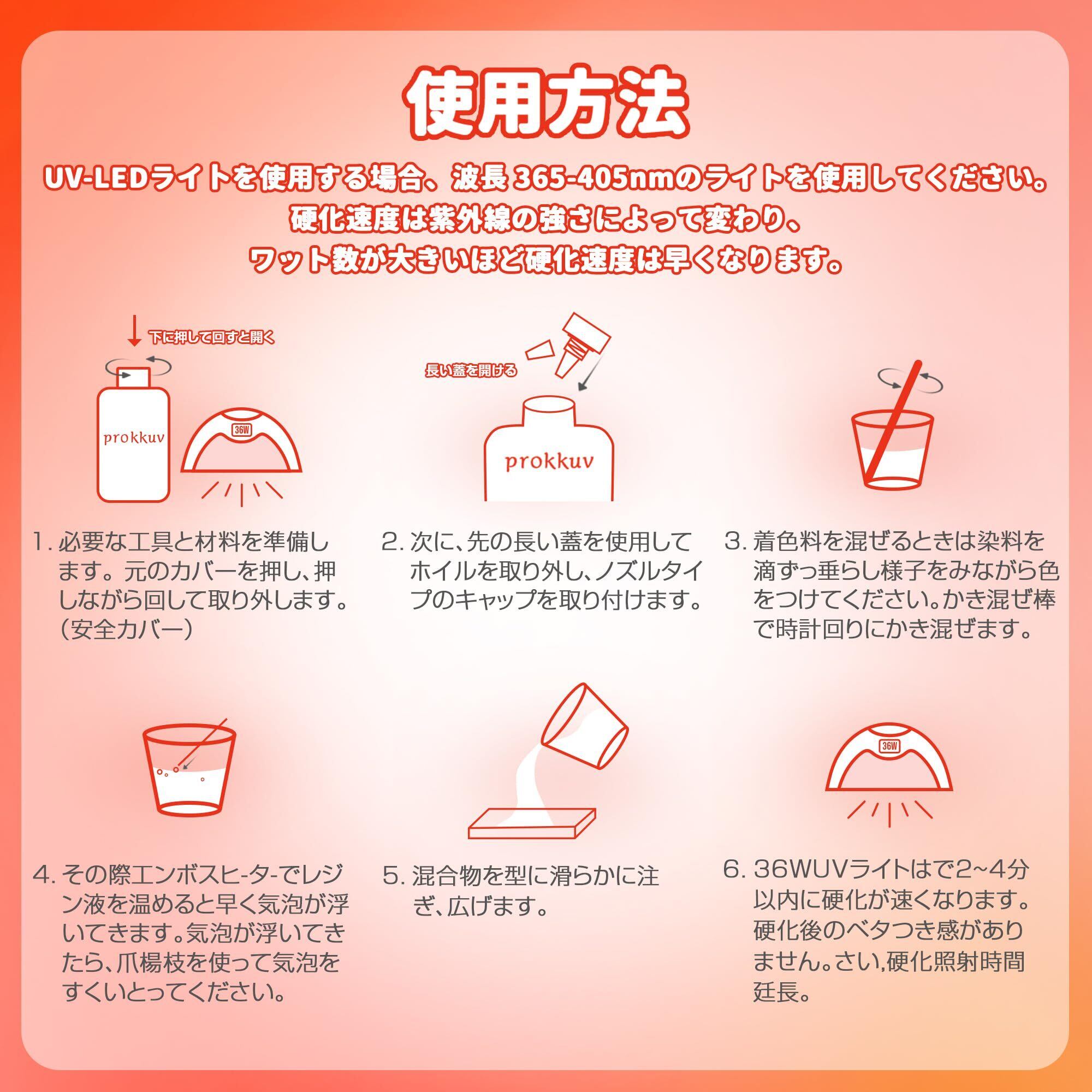 【uvレジン液-使いやすいと硬化が速い】混合カップでUV樹脂液を注入すると同時に、好きなスパンコールやデコレー ションなどのフィラーを入れることで、美しさと豊かさをアップします。型を取り出し、UVレジン液を注入する。硬化用の36Wのuvライトに入れ、表と裏をそれぞれ2-4分間硬 化させます。