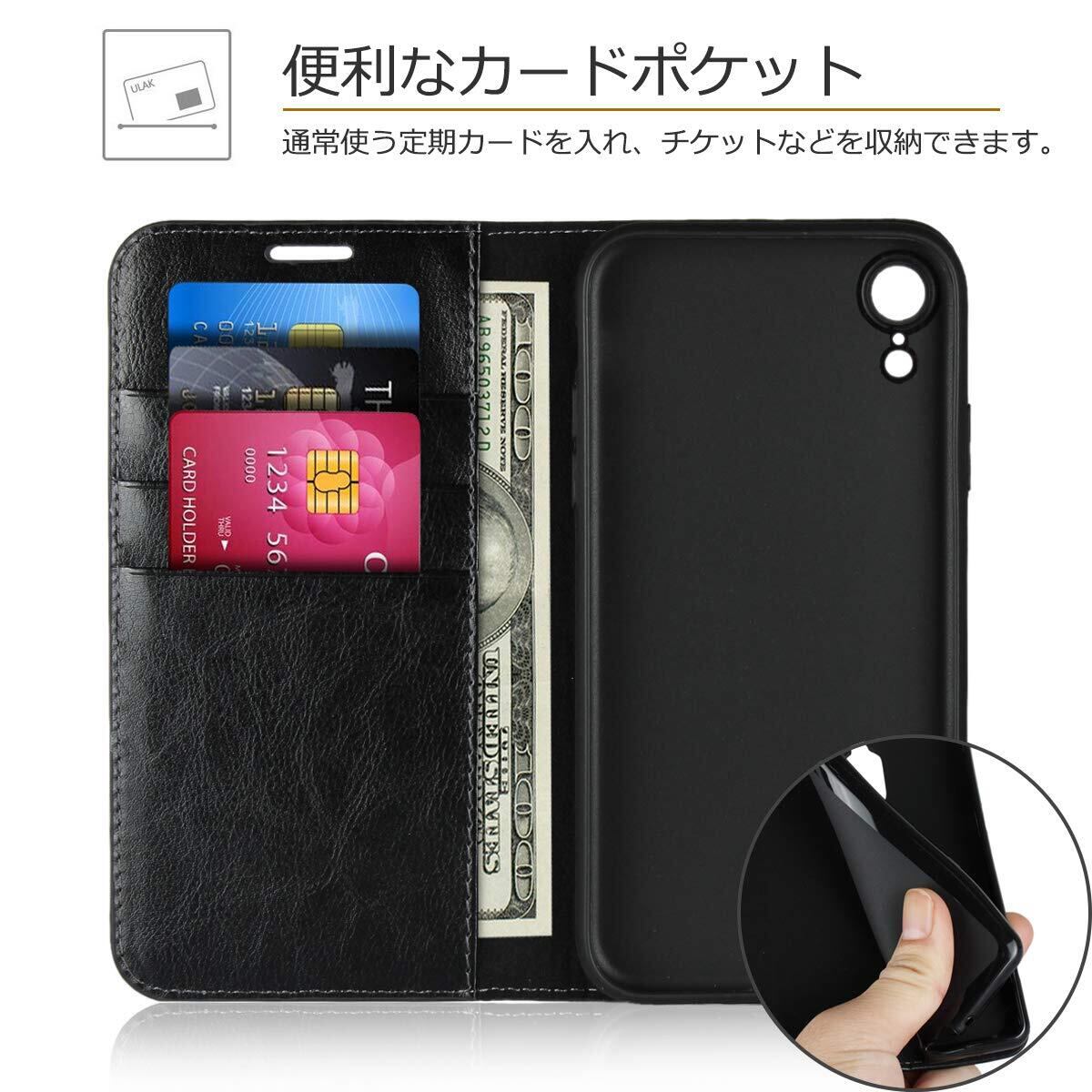 SKIASE iPhone XR ケース 手帳型 本革 高級レザー アイフォンXR 携帯カバー 財布型 横置きスタンド機能 カード入れ カード収納 耐衝撃 全面保護 軽量 薄型 落ち着いた色 ブラック