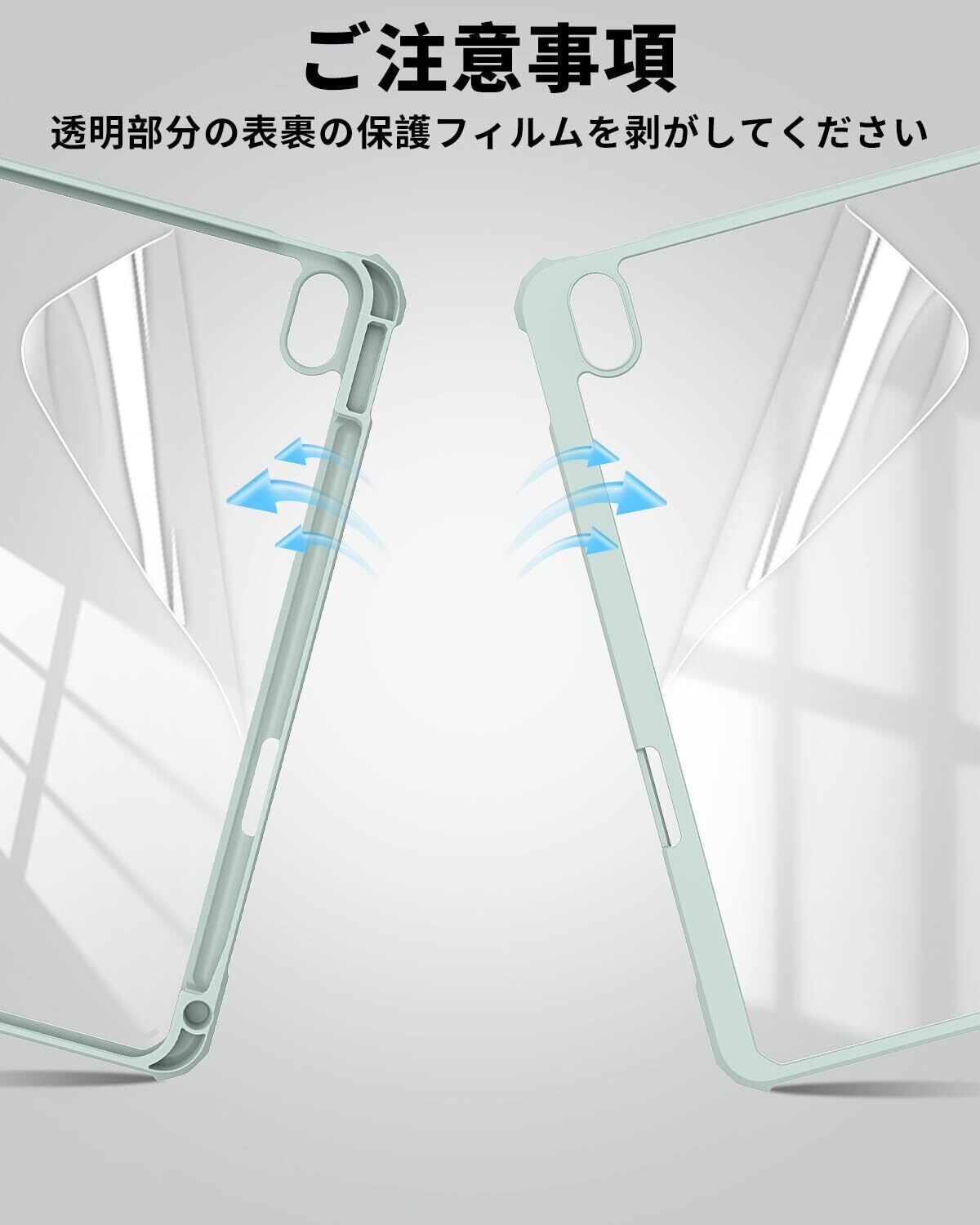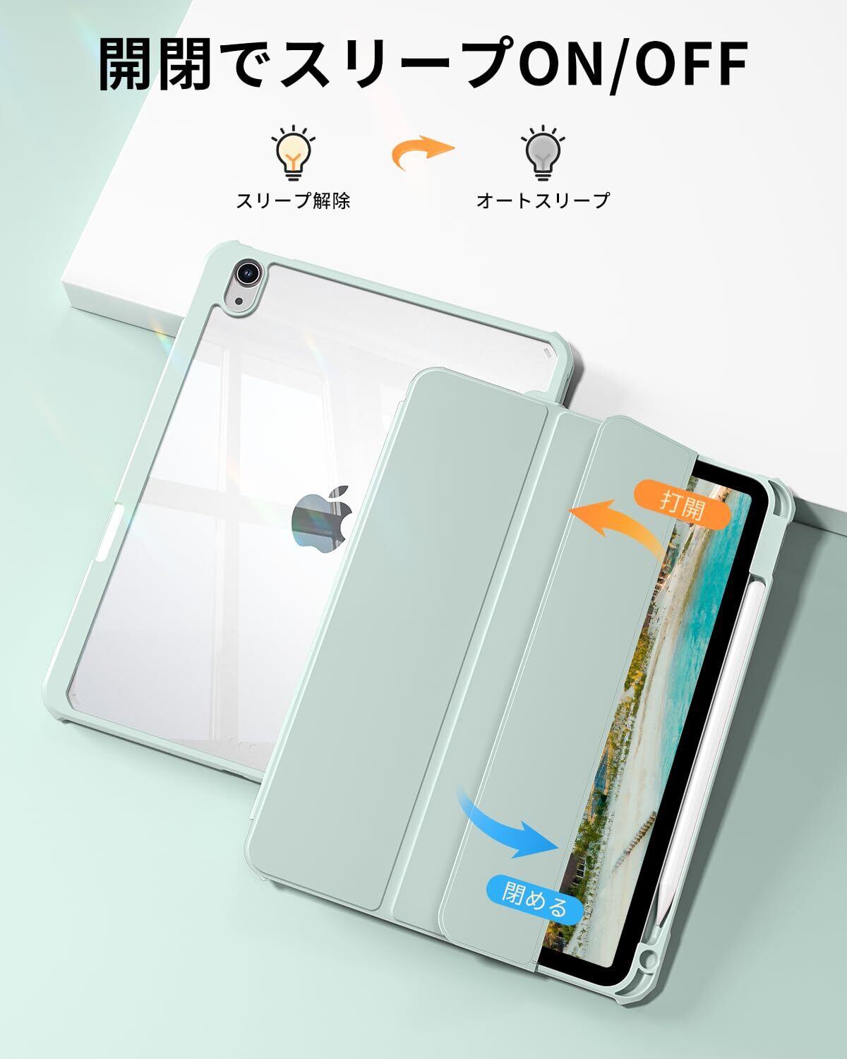 SQBEBS iPad 11世代 ケース A16 (2025) iPad 第11/10世代 10.9インチ (2022) 透明バックカバー ペンシルホルダー付き 三つ折りスタンド Touch IDとオートスリープ機能対応 軽量 薄型 傷つけ防止 PU合成レザー TPU ライトグリーン