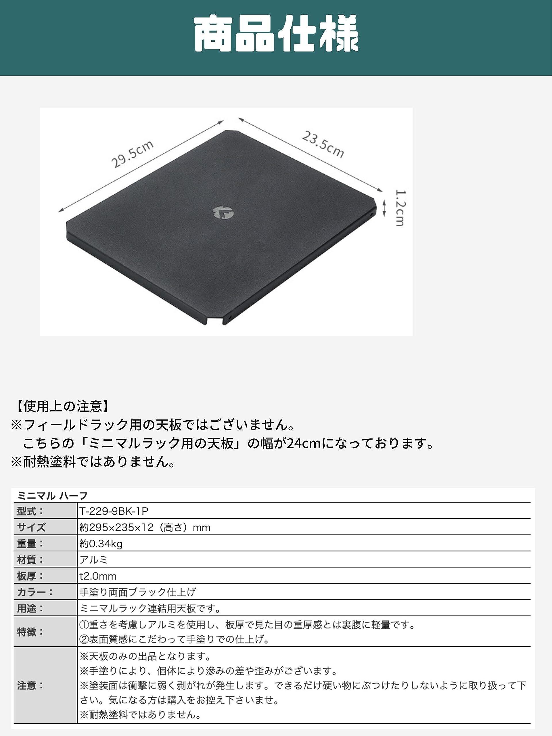 キャンピングムーン(CAMPING MOON) ミニマルラック 連結用 アルミ天板 ハーフ天板 ブラック 黒ギア T-229-9BK-1P
