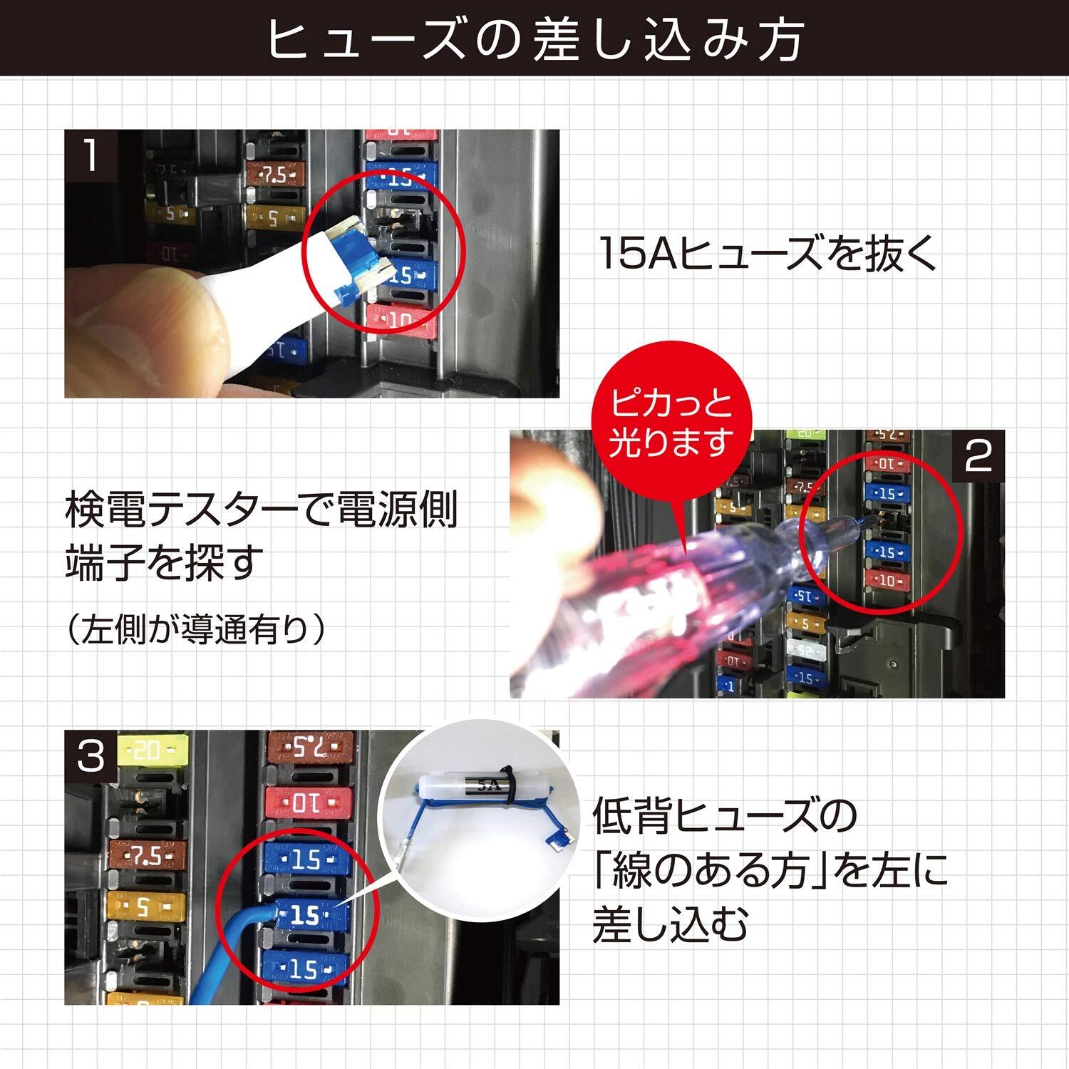 ポータブルナビ・レーダー探知機・ドライブレコーダーなどの電源取り出しに ・ヒューズボックスの15A低背ヒューズと差しかえるだけで電源が簡単に取り出せる