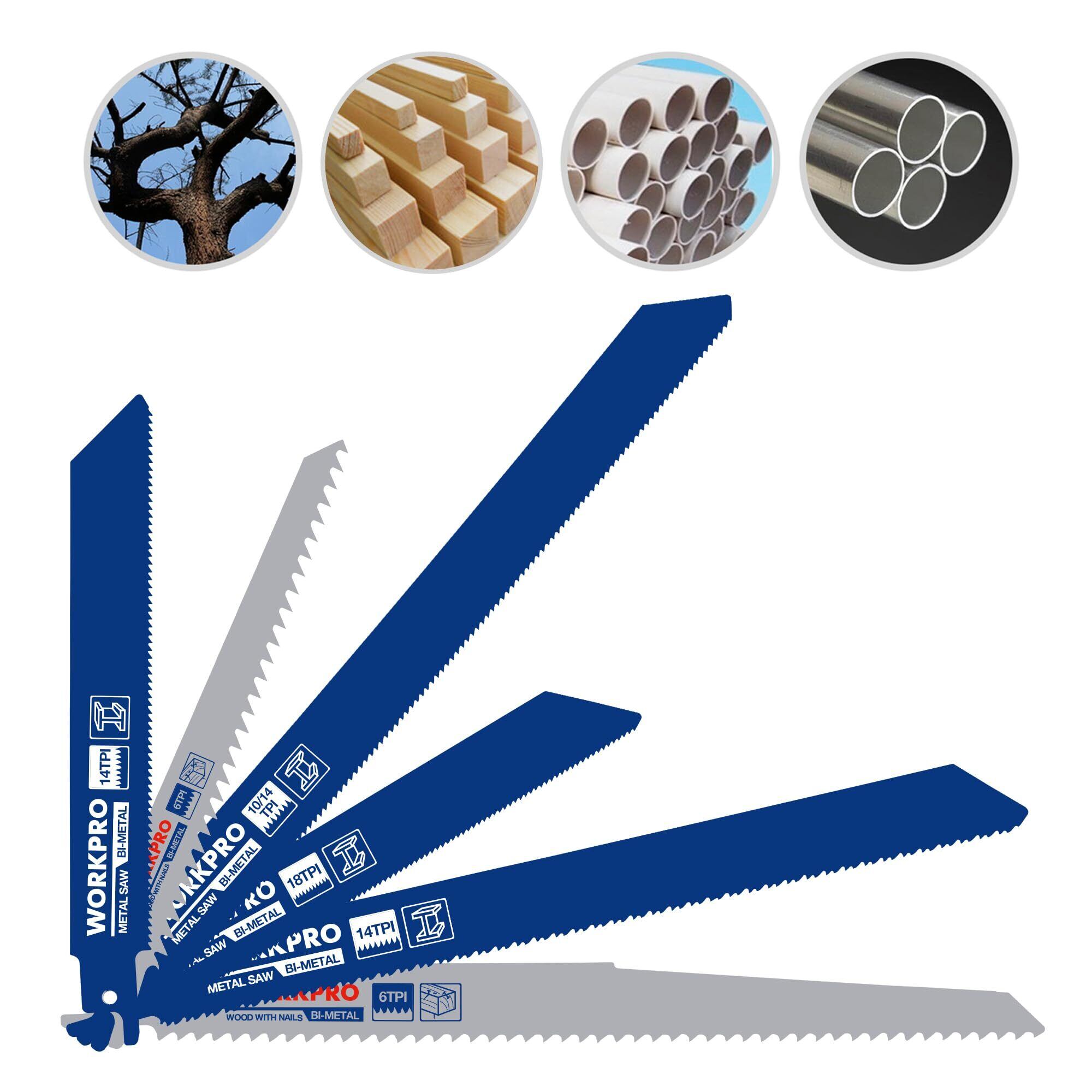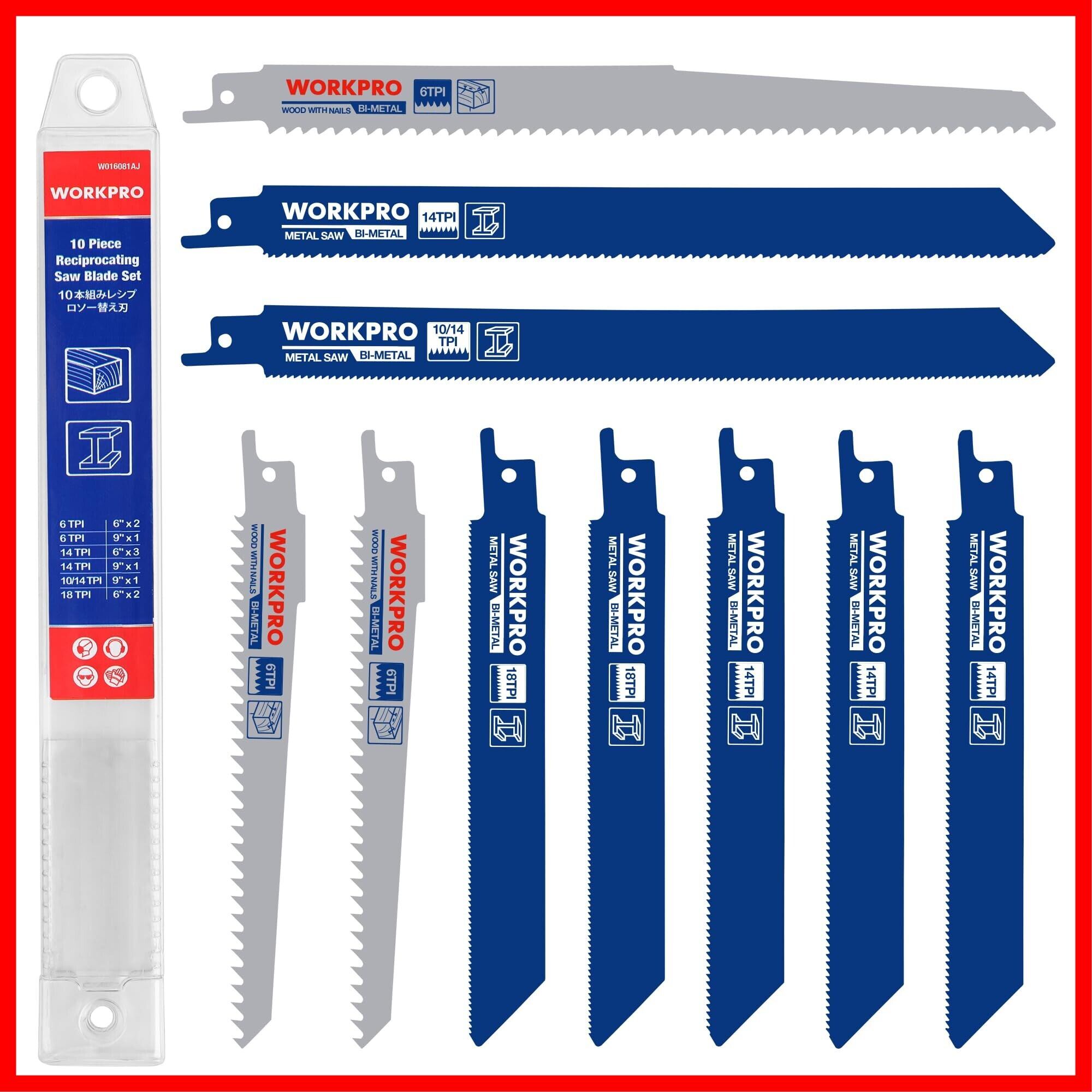 WORKPRO レシプロソー替刃 レシプロソーブレード 電気のこぎり替え刃 鉄工・木工用 金属 ステンレス 非鉄金属 プラスチックパイプ 解体用 収納ケース付き 10点組