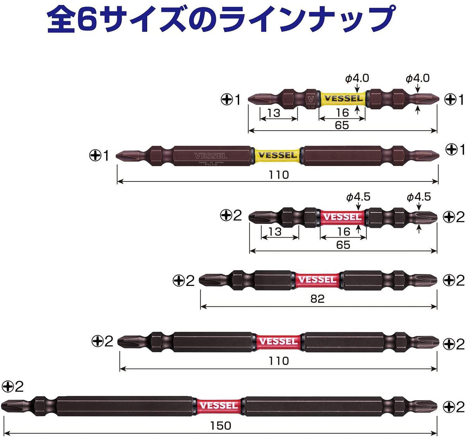 ベッセル(VESSEL) 40V対応 両頭ビット サキスボ スリム トーション +2×φ4.5×110mm 5本 SDT5P2110