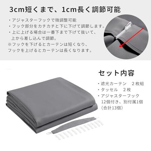Hansleep カーテン 遮光カーテン 1級遮光 厚手 断熱 防寒 防音 無地 洗濯可能 寝室 リビング 2枚組 (グレー, 幅100cm×丈178cm)