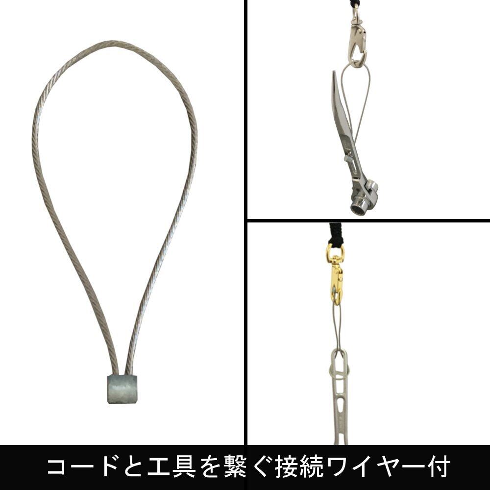 工具取付側はロック付カラビナで接続ワイヤーが外れません