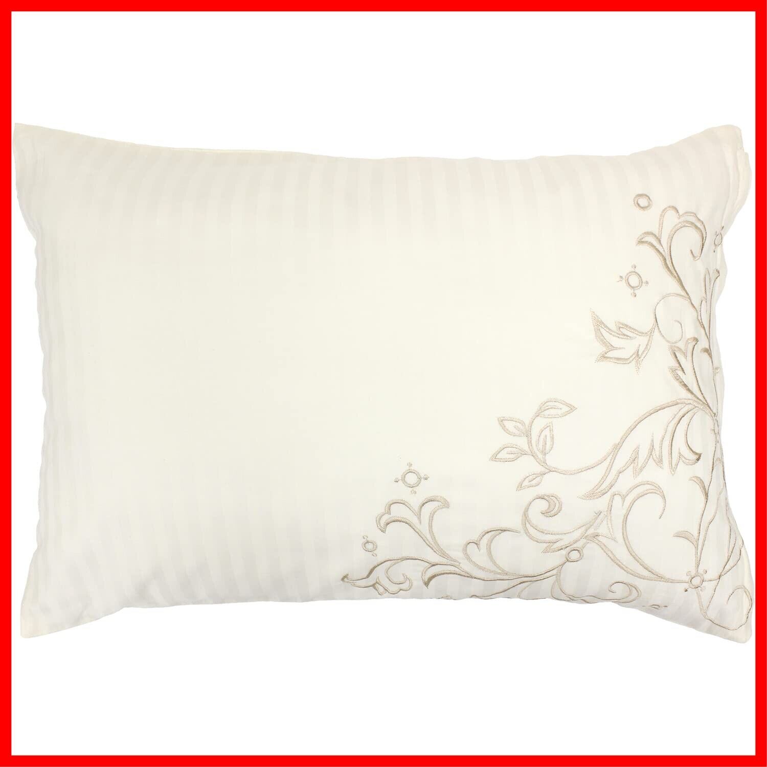 サテンストライプに刺繍を施し、上品で繊細なイメージの枕カバー。高密度な刺繍には光沢があり高級感があります。サテンストライプの特長でもある上品な光沢感と滑らかな肌触りがラグジュアリー感のあるベッドルームを演出。綿100%の生地を使用し保湿性、吸水性に優れているのでオールシーズン快適にお使いいただけます。