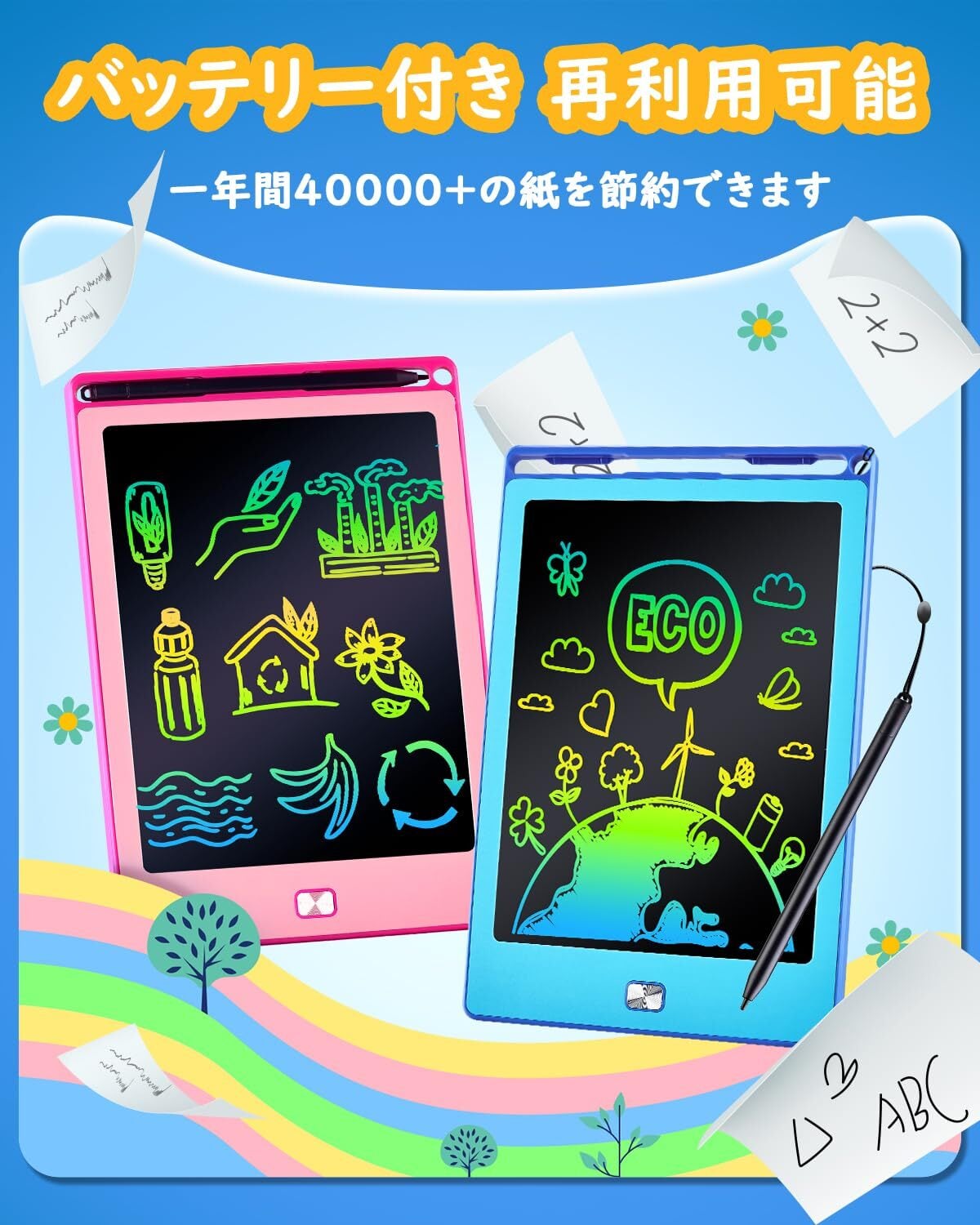 【耐久性に優れ、環境にも優しい】お絵描きボードに直接描けるので、インクや紙を購入する必要がありません。ゴミを減らすことで、お金を節約できるだけでなく、環境保護にも役立ちます。電子メモを使用する際、部屋や服を汚す心配もありません。この落書きボードにはCR2025電池が内蔵されており、10万回以上使用できます。電池が切れても簡単に交換できます。