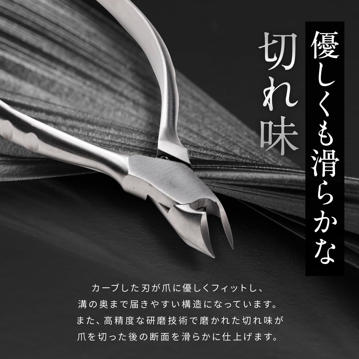 【ニッパー爪切りとは?】「硬い爪」「厚い爪」「巻き爪」に適した爪切りです。そのため、通常は「足の爪」に使用されます。工具のニッパーのようにてこの力を利用し、小さい力で切りやすいように工夫されております。通常の爪切りでは切りにくい爪の端にも届き、細かく切ることができます。