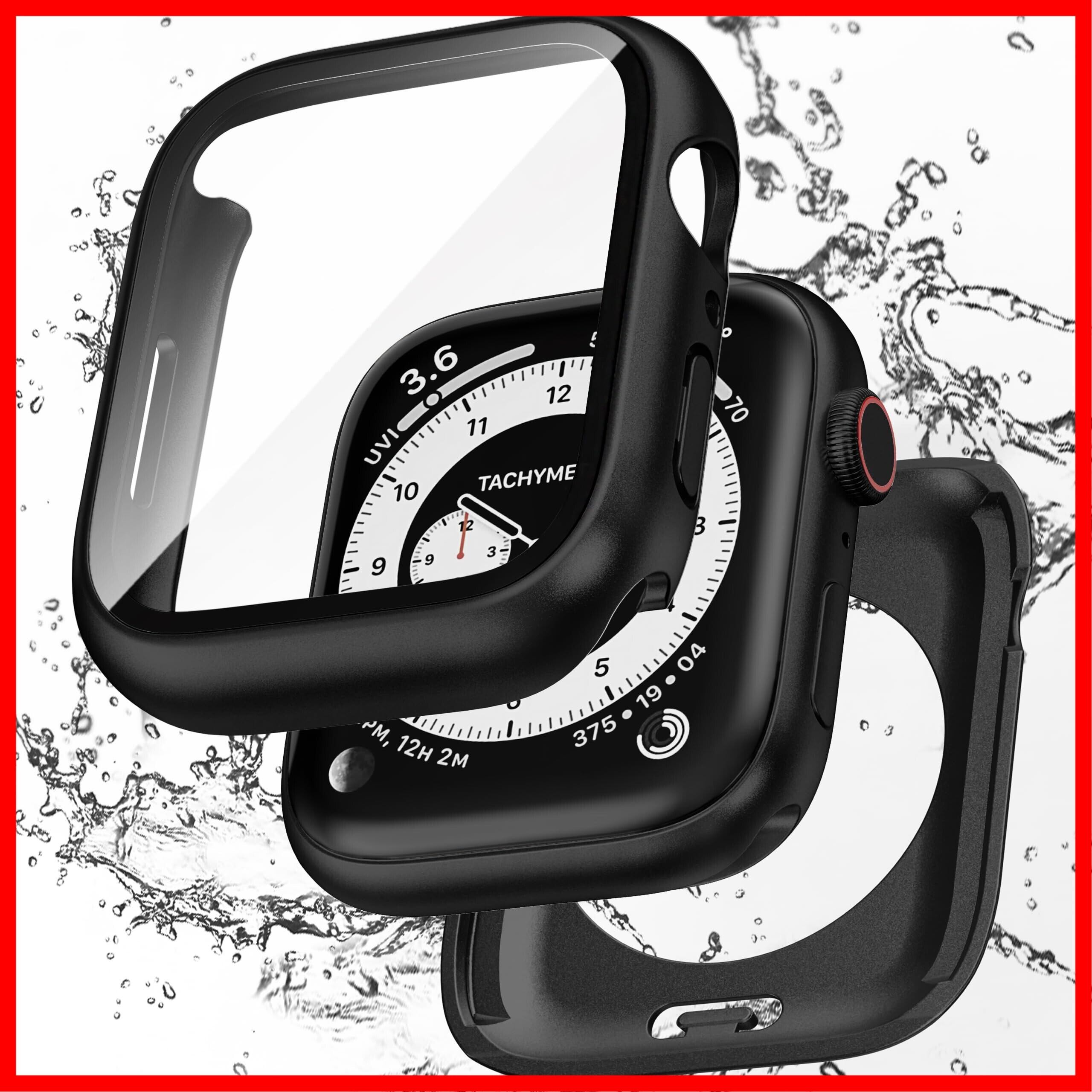 【フルカバー保護】Puptoya アップルウォッチ 防水 カバー Apple Watch SE Series 6 5 4 SE第二世代 対応 44mm ケース 2 in 1 前後の保護 PC+ガラス素材 高透過率 装着簡単 脱落しやすい 耐衝撃 iWatch 44mm ブラック