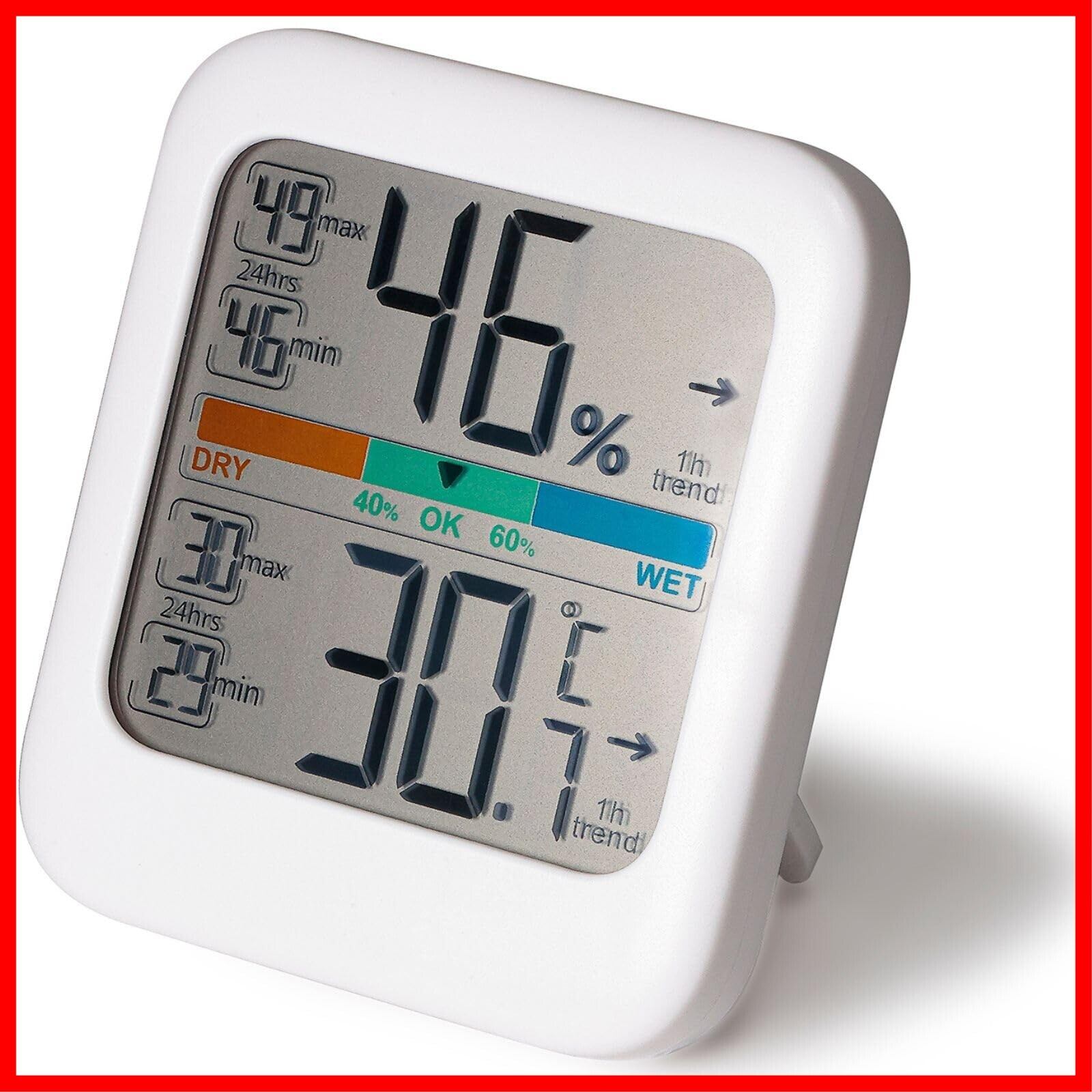 【シンプルで見やすい温湿度計】コンパクトなボディに最高最低温湿度の表示機能が付いたデジタル温湿度計。お部屋の温湿度環境のモニタリングにおすすめです。