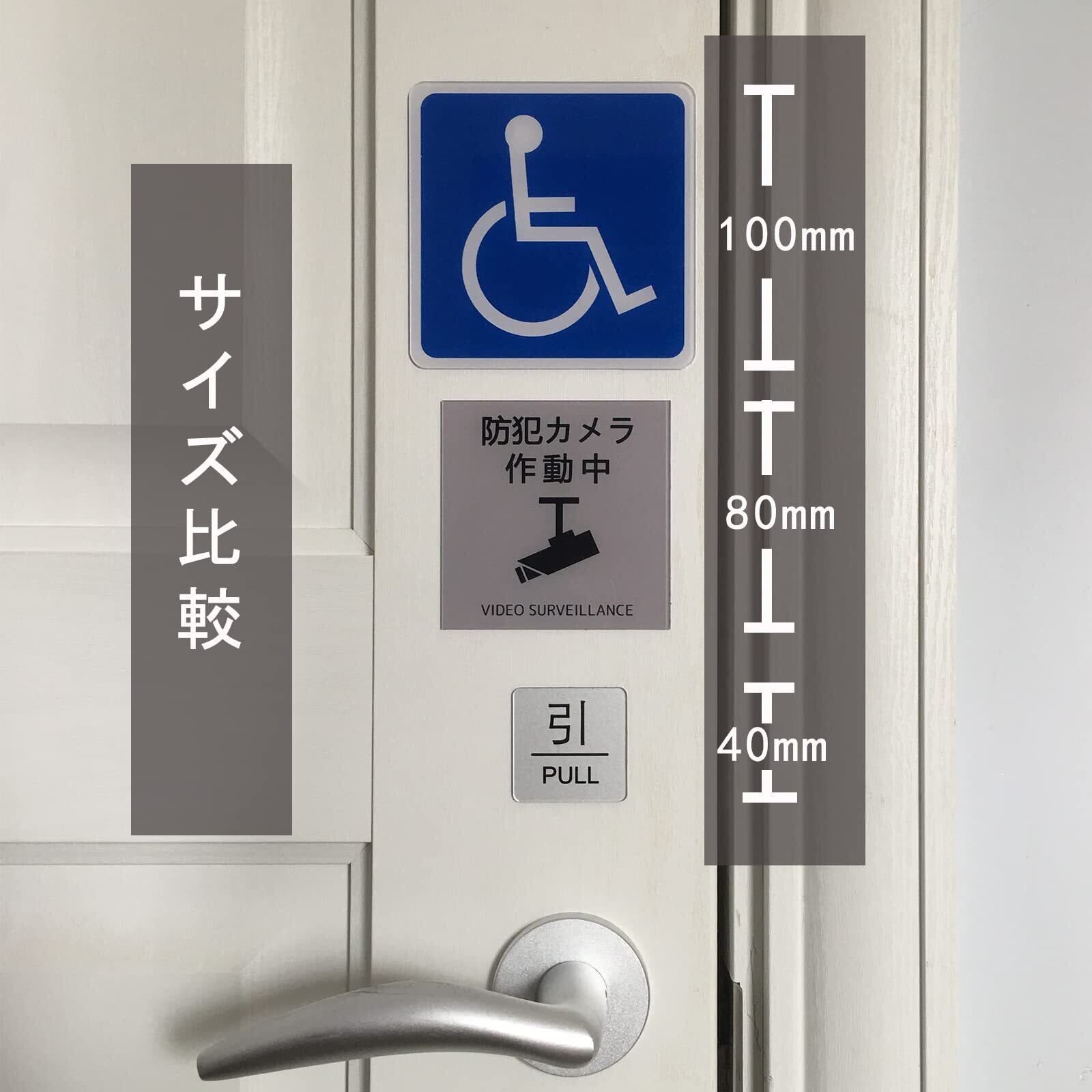 Seagron 防犯カメラ 作動中(文字型)サインプレート 両面テープ付き ステッカー グレー色 2㎜アクリル製 おしゃれ 耐水 耐候 (80×80㎜(1枚))