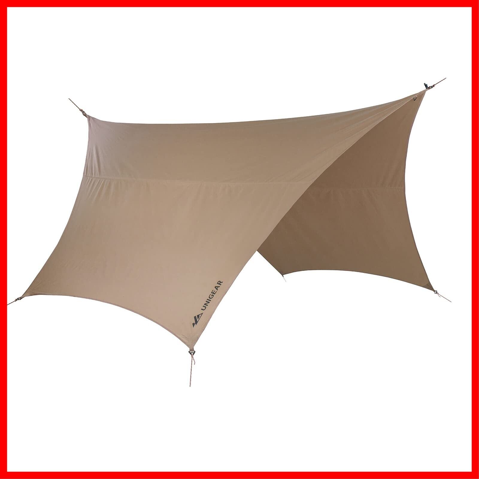 Unigear ヘキサタープ tcタープ ポリコットン 5m延長ベルト付き 4.2mx4.1m テントとの取り組み可能 焚き火 タープ 遮光 遮熱 難燃 軽量 コンパクト キャンプ アウトドア (420*410cm, カーキ)
