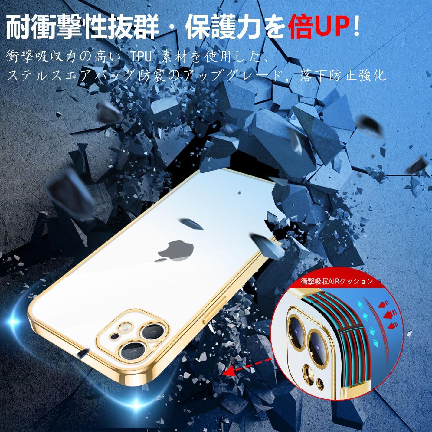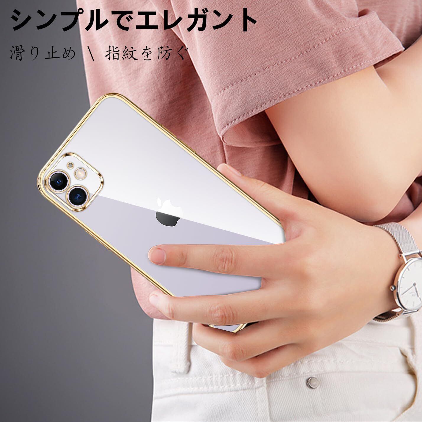 iPhone11 ケース クリア カメラ保護 薄型 軽量 変形防止 人気 スリム ソフト アイフォン 11 カバー 衝撃吸収 ストラップホール付き 指紋防止 (ゴールド)