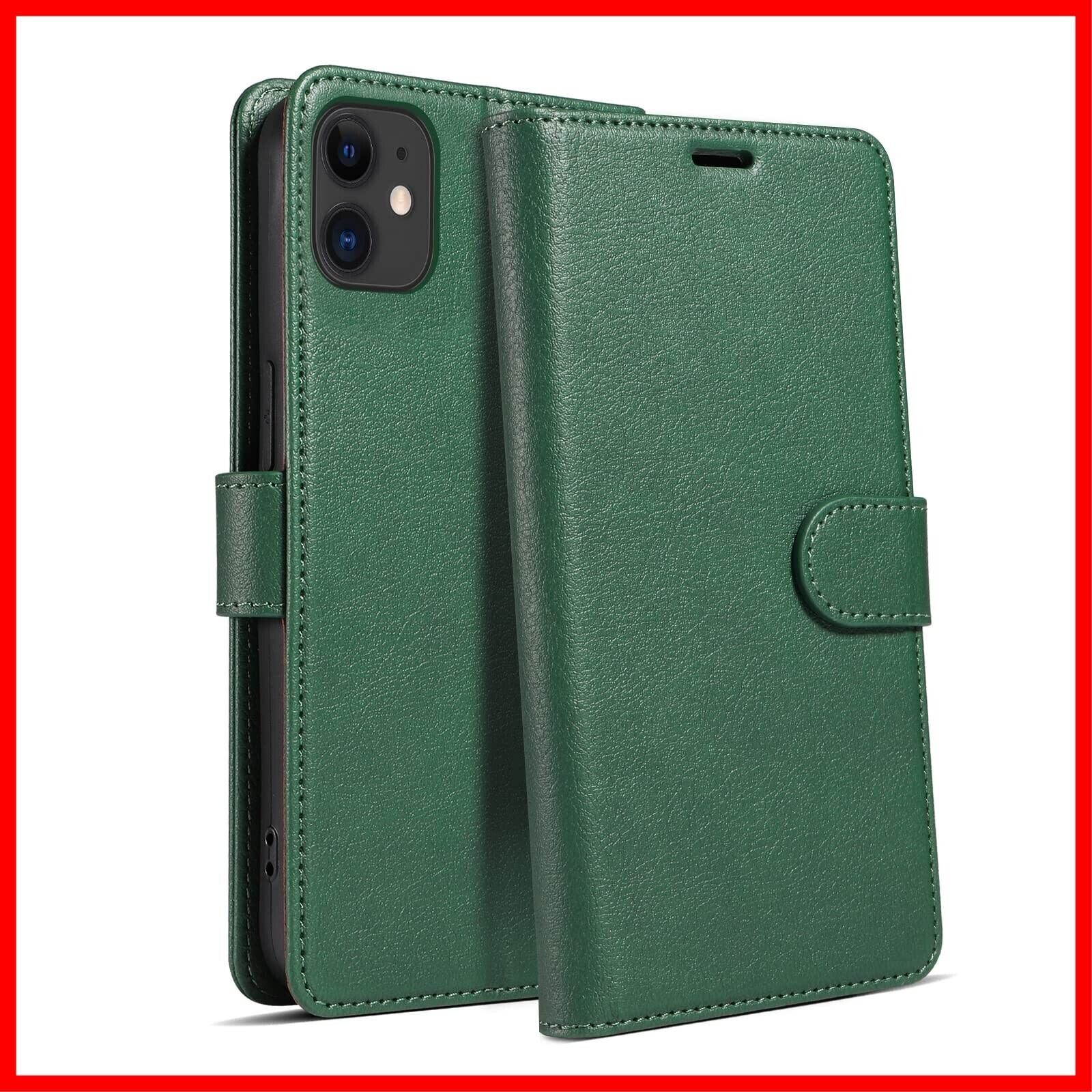 QUEASON 互換品 スマホケース「iphone 11 用 ケース 手帳型」マグネット式 PUレザー いphone11 用 ケース 手帳型 耐衝撃 アイフォン 11 用 ケース 手帳型 カード収納 スタンド機能 アイフォン11 用 ケース 手帳型 携帯カバー 落下防止 全面保護(グリーン)