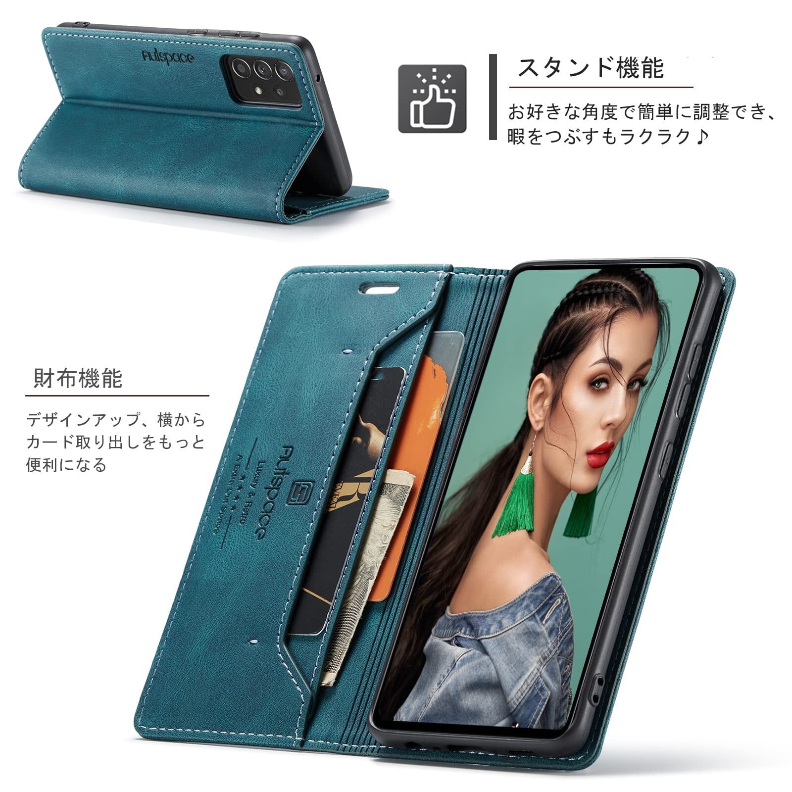 Galaxy A53 5G ケース 手帳型 SC-53C 手帳型ケース SCG15 ケース a53 5g ケース スマホケース ギャラクシー sc-53cケース case RFID 磁気防止 スキミング防止 マグネット式 スタンド機能 ストラップホール付き 薄型 (Galaxy A53 5G対応) ターコイズ