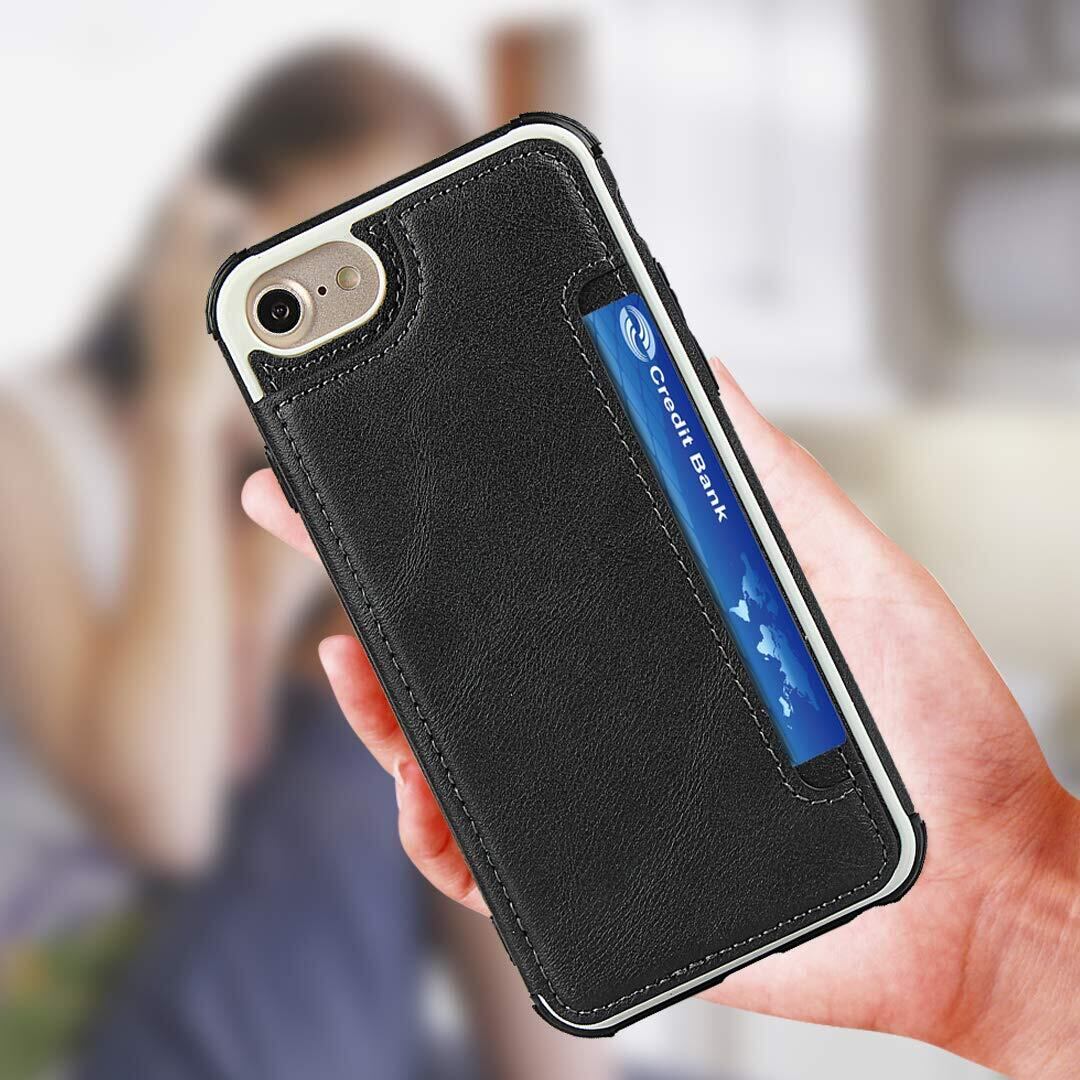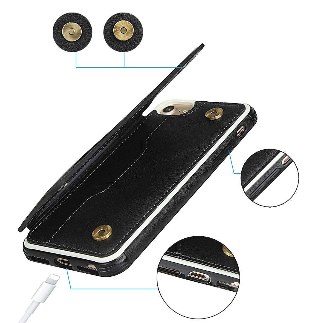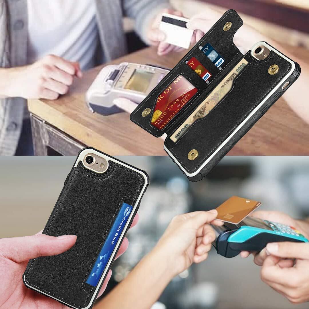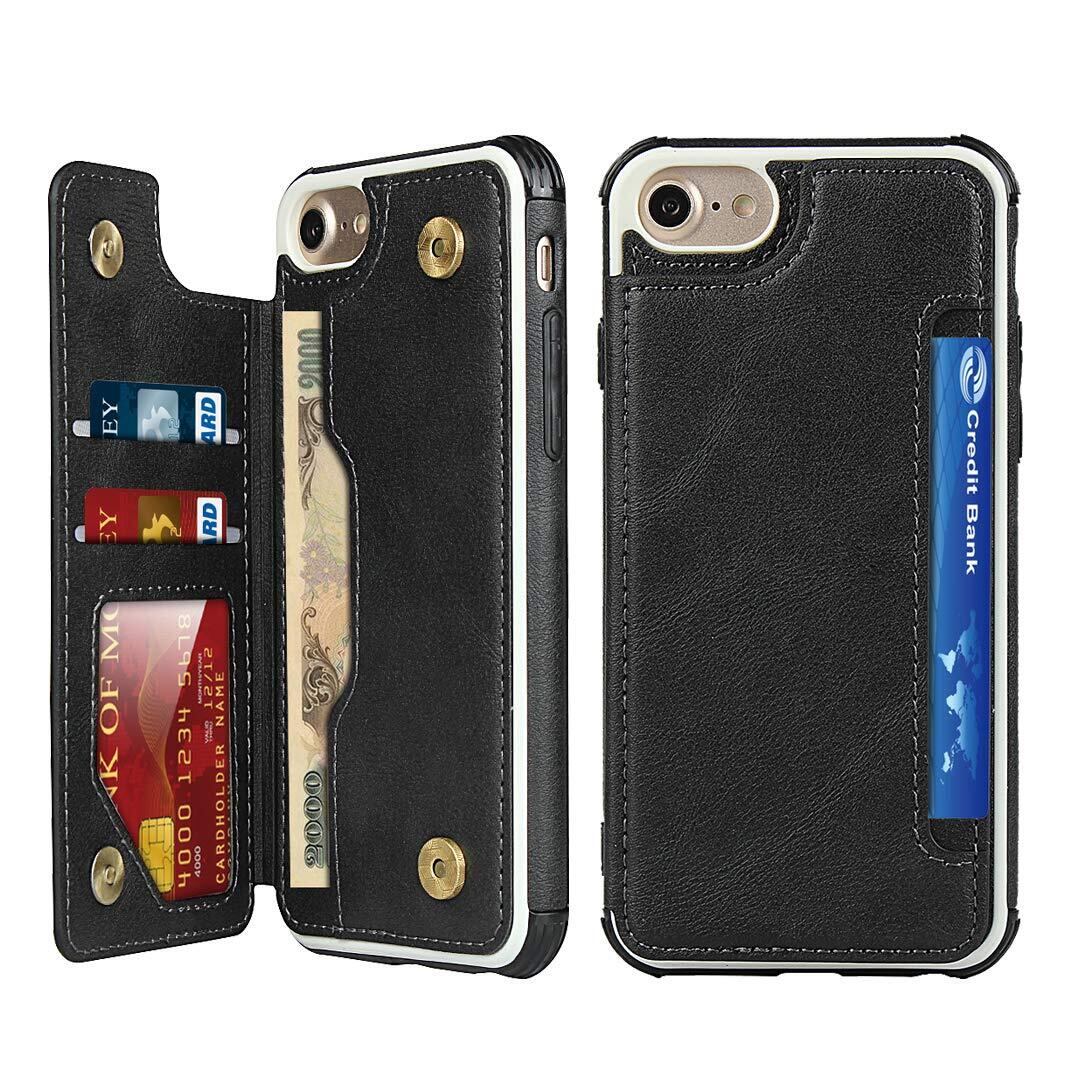 Pelanty iPhone SE 2022 第3世代/ SE 2020 第2世代 ケース iPhone7/ iPhone8 ケース手帳型 iPhone6/iPhone6s ケース 縄掛け ケース 通用 4.7インチ 背面 手帳型 PUレザー IC カード収納 軽量 スタンド機能 ボタン磁気 多機能 アイフォンSE2/SE3/7/8/6/6s スマホケース 耐衝撃 滑り防止 全面保護 ストラップ 携帯カバー [5色選択]ブラック