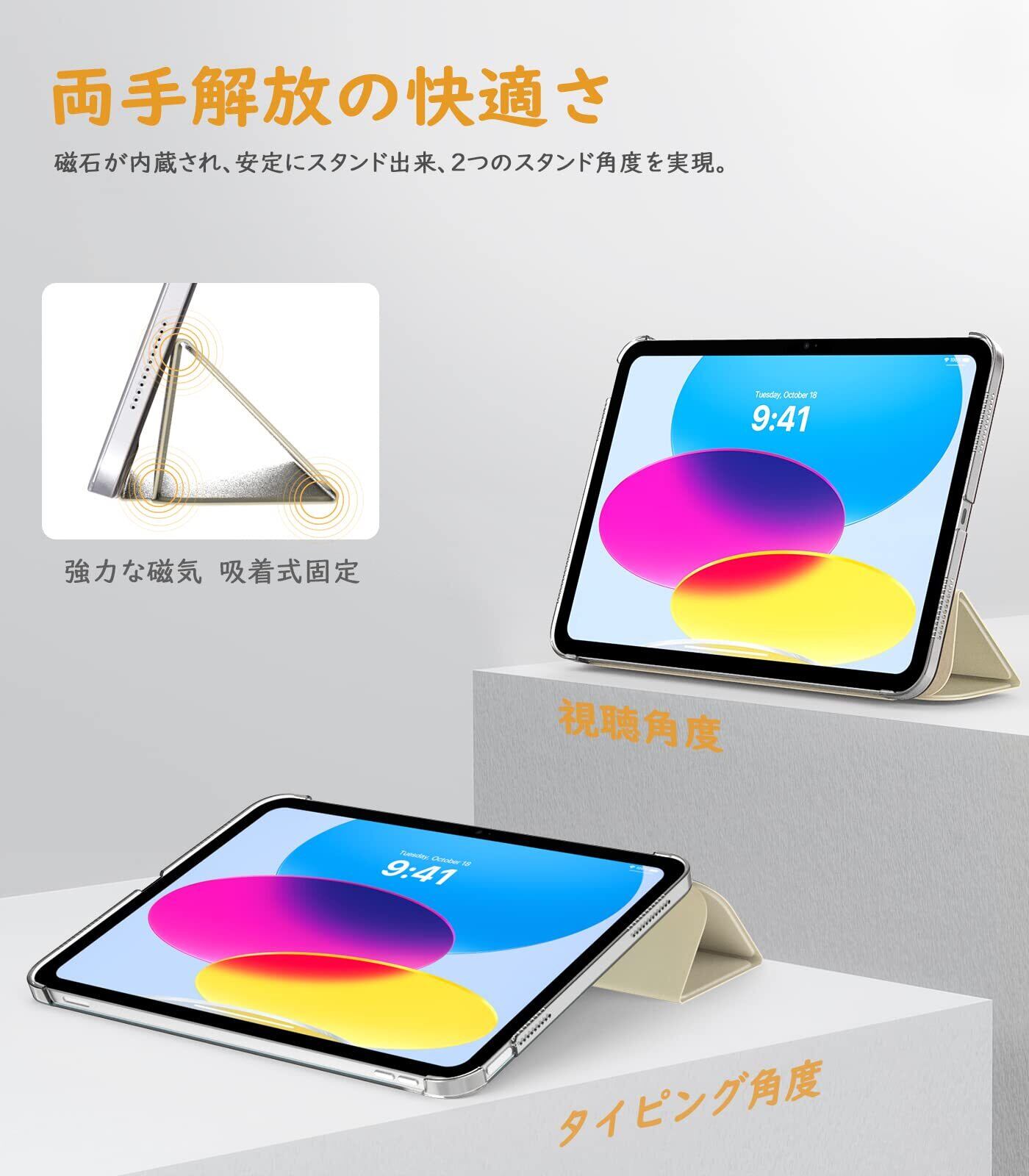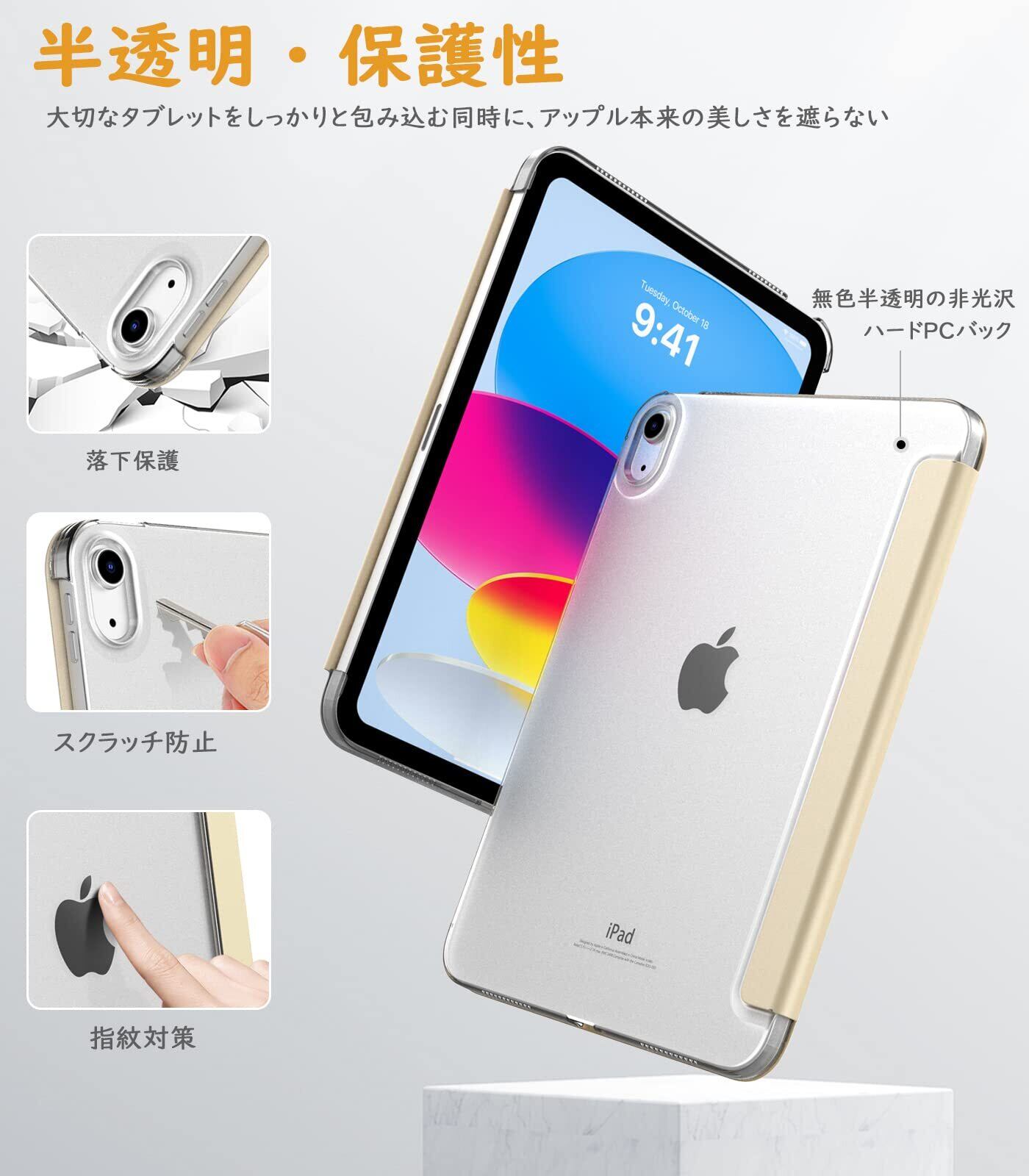 TiMOVO iPad 11世代(A16)ケース 11インチ iPad 10世代 ケース 10.9インチ ipad第10世代 カバー ハードカバー PUレーザー 開閉式 三つ折り スタンド マグネット オートスリープ機能 耐衝撃 軽量 落下防止 精密設計 着脱簡単 ipad第11世代ケース 半透明 ChampagneGold