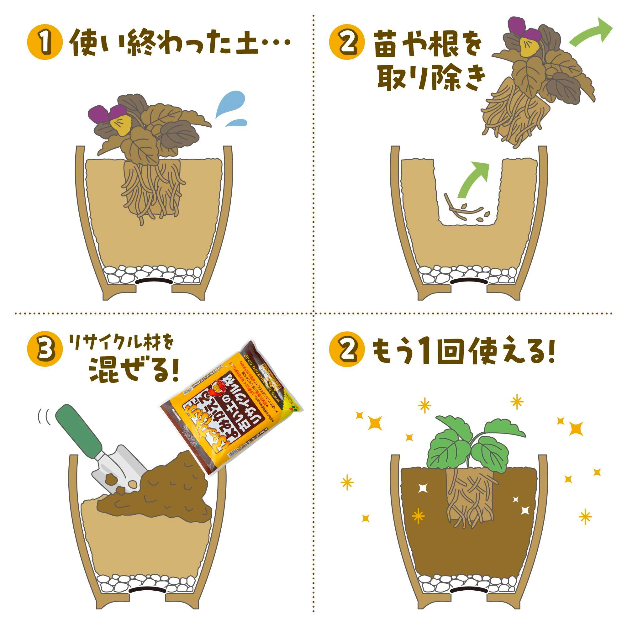 ●一度使った土に混ぜるだけで手間をかけない