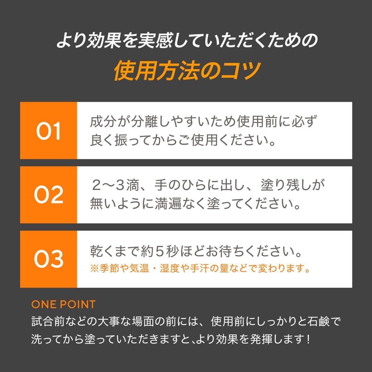 【強力なグリップ力】バスケットボール用に開発しているため、使用時のグリップ力は通常のスプレータイプなどと比べ非常に強力。PD9は松ヤニ成分の代わりにアルミナという微細な金属粉を使用。手にまんべんなく吸着し、手の滑りを防止してくれます。