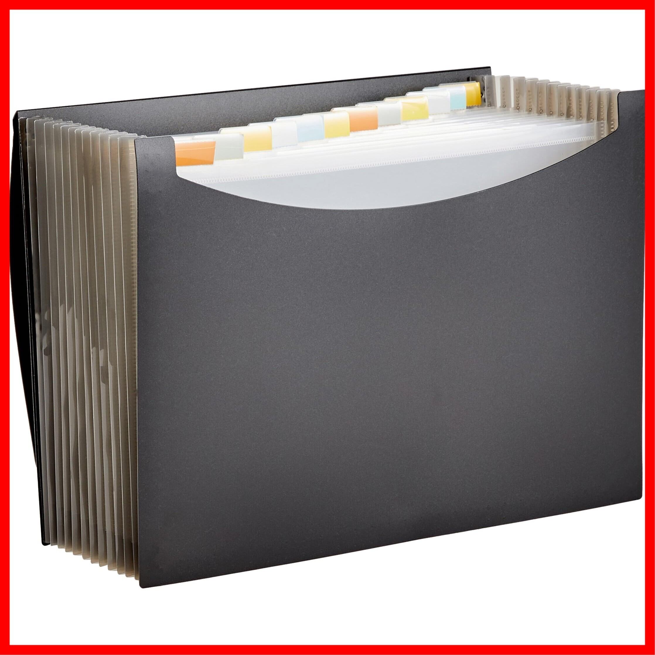 ベーシック 書類ケース ファイルケース A4 書類収納 持ち運び 拡張式 区分けラベル付き, 横13cm x 縦21cm ブラック