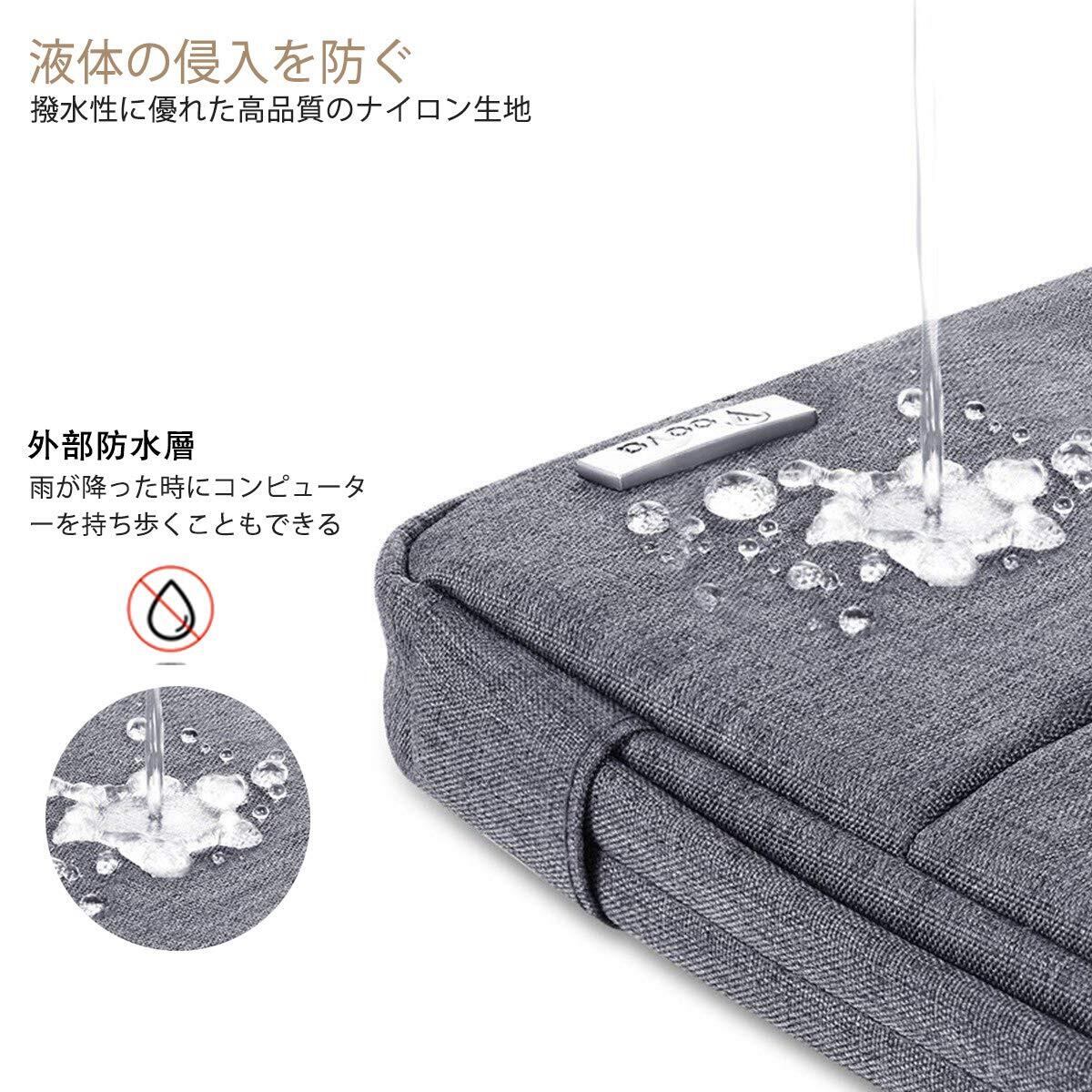 【全面保護】外部からの衝撃を吸収する厚みを保ちながら、体積を少なくして軽量化を実現しています。パソコンケース表面は撥水性に優れ、耐久性と高級感のあるオックスフォード布を採用しております。pcケースの内部が手触りの柔らかい天鵞絨で覆われていて、厚いクッション材が入っております。不意な落下や衝撃を吸収し、ラップトップが傷つかないように保護します。