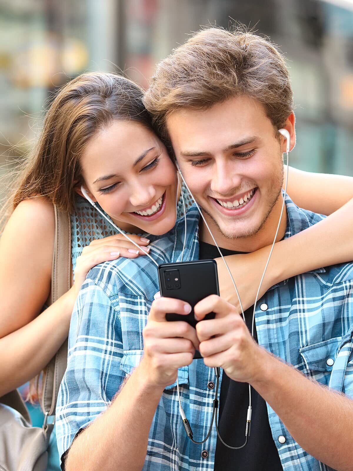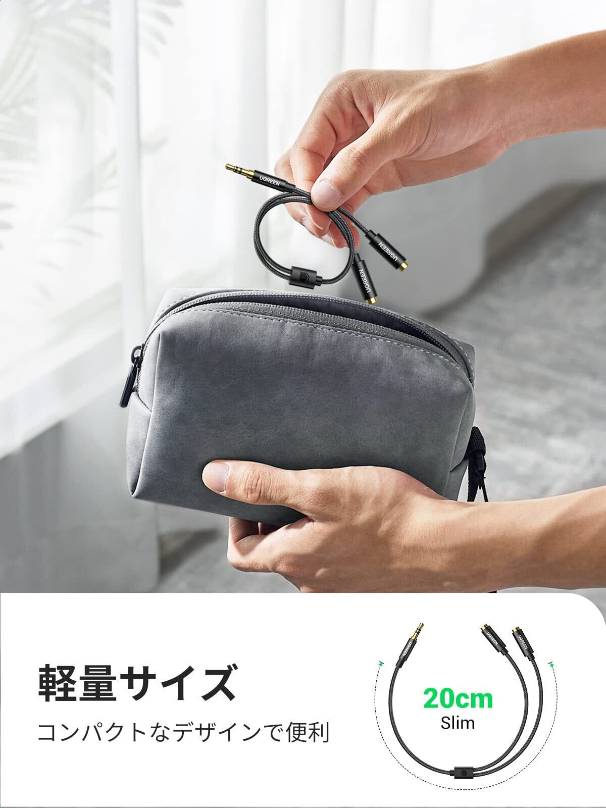 UGREEN オーディオケーブル 3.5mm 分配ケーブル 3極/TRS イヤホン 分岐コード 【双方向転送】 ヘッドホン延長ケーブル Hi-Fi音質 高耐久性ナイロン編み 24K金メッキプラグ スマホ/タブレット/MP3/に対応 20CM